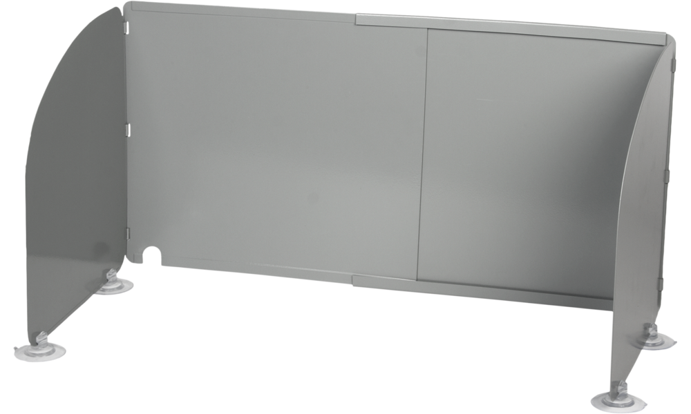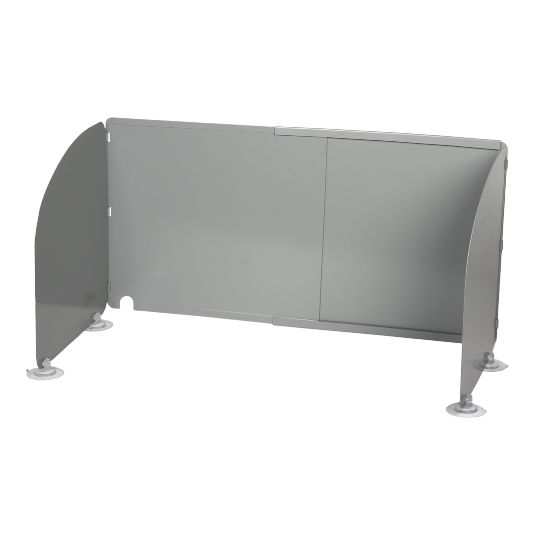 Kocher-Windschutz. Ausziehbarer Kocher-Windschutz aus verzinktem Stahl mit vier Saugnäpfen zur stabilen Befestigung.