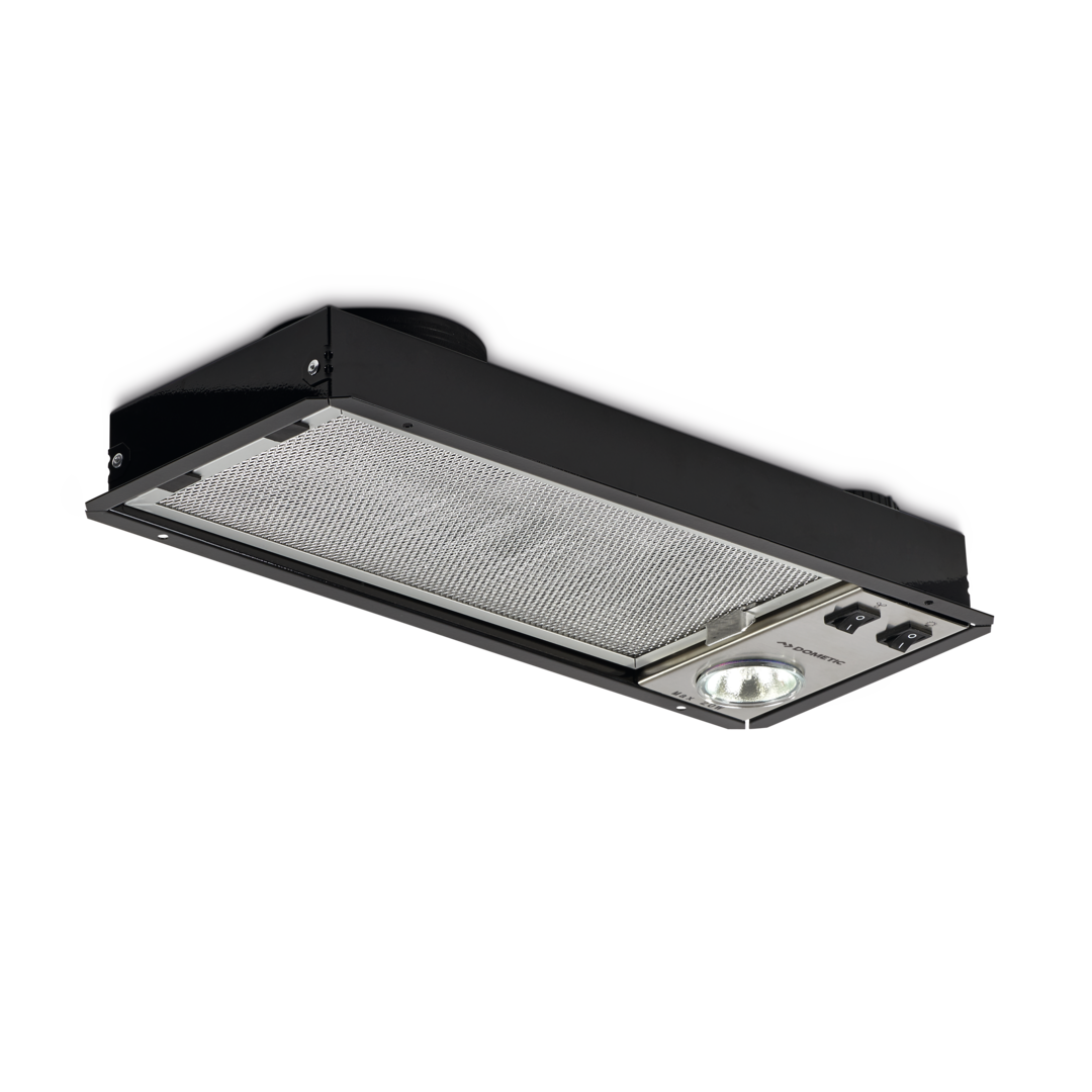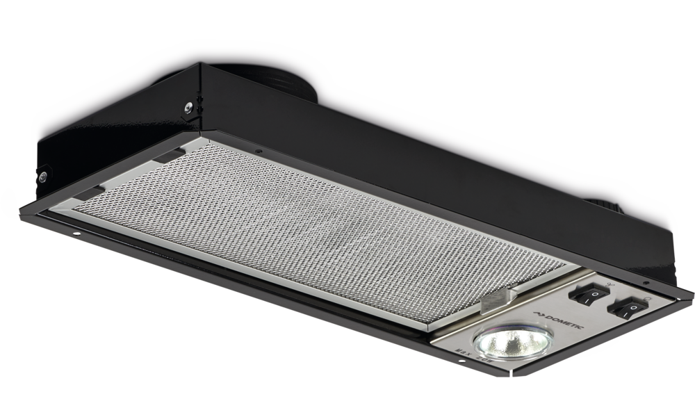 Dunstabzugshaube CK 150. Die Umluft-Dunstabzugshaube leitet äußerst schnell Kochdünste, Gerüche und feuchte Luft aus der Kabine heraus. Die Dometic CK 150 besitzt ein kompaktes Gebläse mit einem 1-stufigen Motor. Für optimierten Luftstrom und Leistung ist der Lüfter in der Dachkuppel integriert und nicht direkt in der Abzugshaube verbaut.