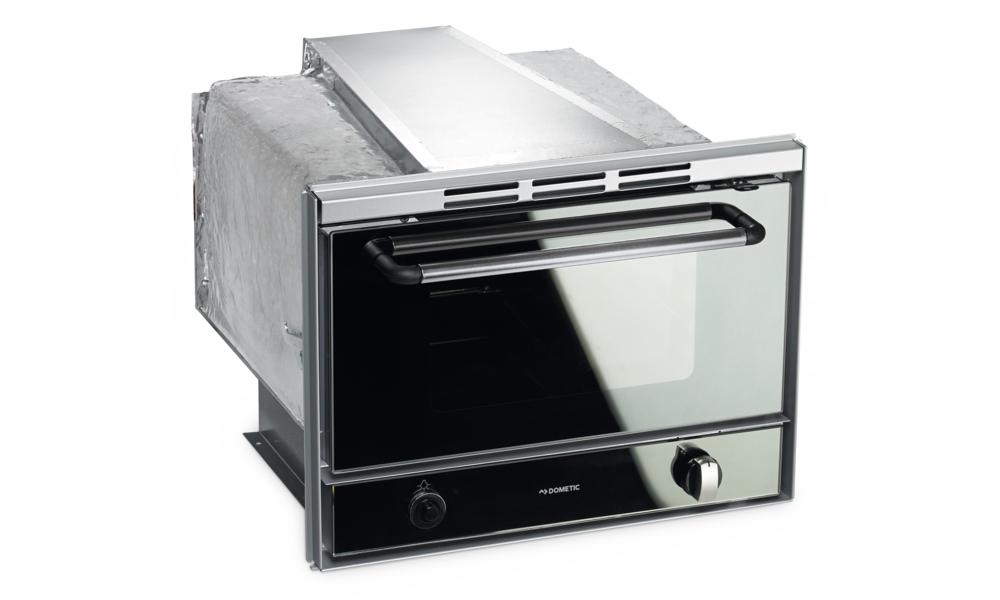 Backofen OV 1800. 18-Liter-Backofen aus rostfreiem Edelstahl. Ausstattung: Hitzeglas und Panoramascheibe, Thermostat, elektronische 12-Volt-Zündung, Innenbeleuchtung, Türanschlag unten, Backblech und Pfanne emailliert, Rost Edelstahl.