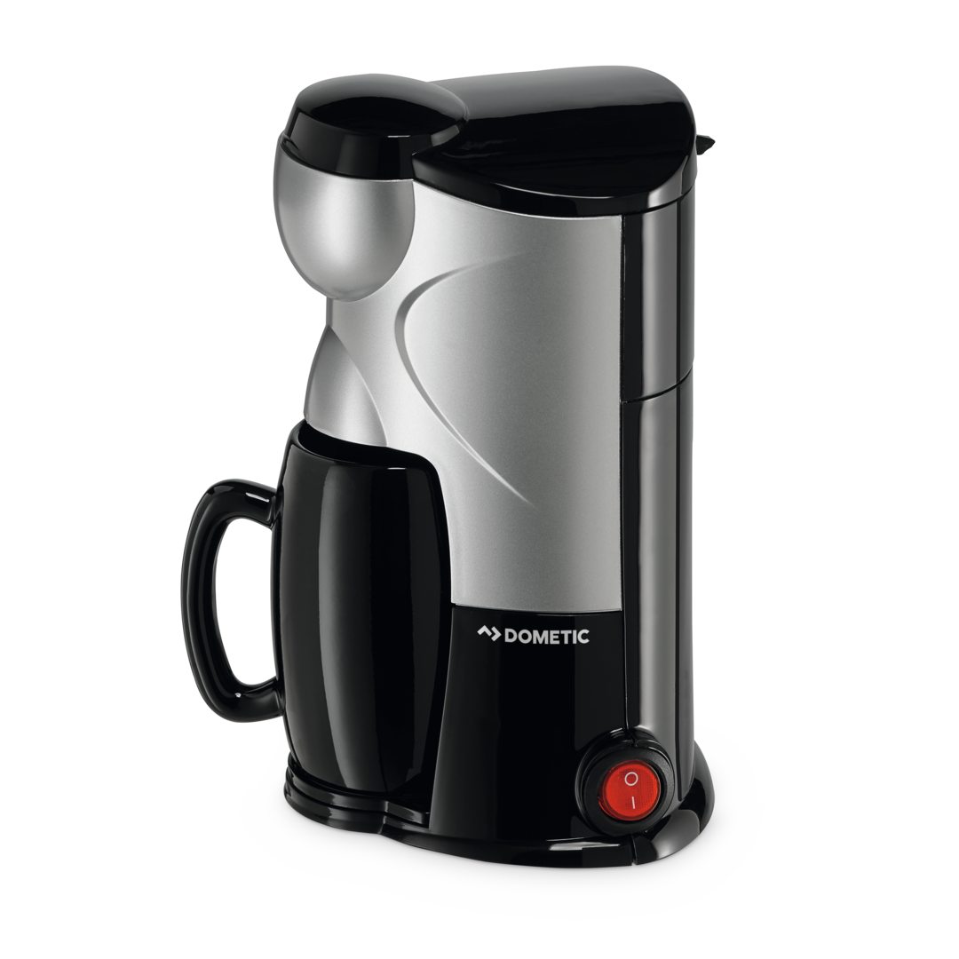 Dometic Kaffeemaschine MC 01. Speziell für den mobilen Einsatz entwickelt. Diese Kaffeemaschine liefert genau 1 Tasse (150 ml) frisch gebrühten Kaffee in nur fünf Minuten. Inklusive Befestigungskit für Wand- oder Bodenmontage. Mit Betriebsanzeige, Dauerfilter, automatischer Abschaltung und Trockenkochschutz. Technische Daten: Volumen 150 ml. Anschlussspannung 12 V DC, Leistungsaufnahme 180 W, Stromaufnahme ca. 15 A. Farbe silber/schwarz.