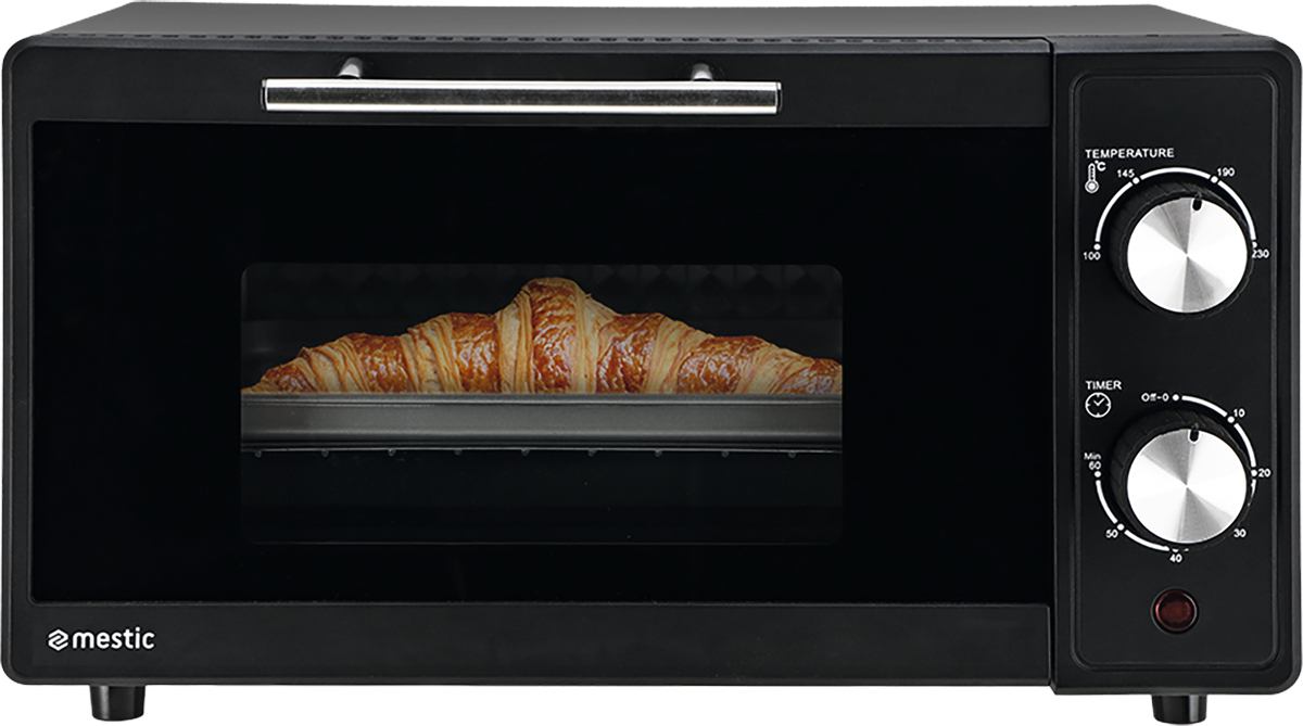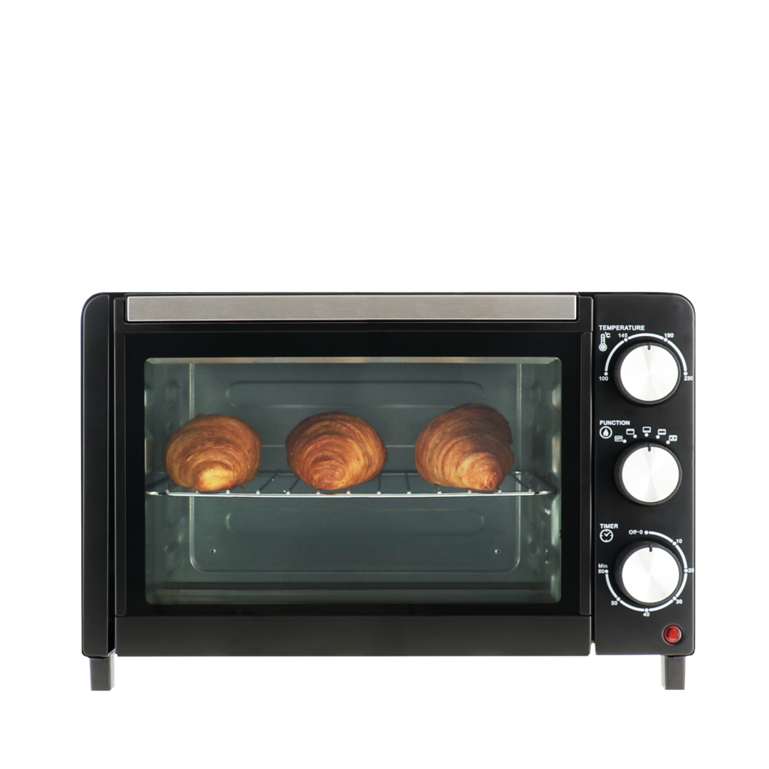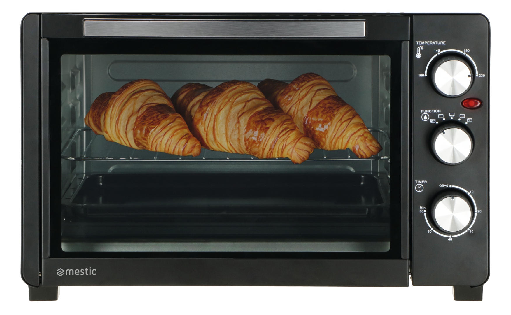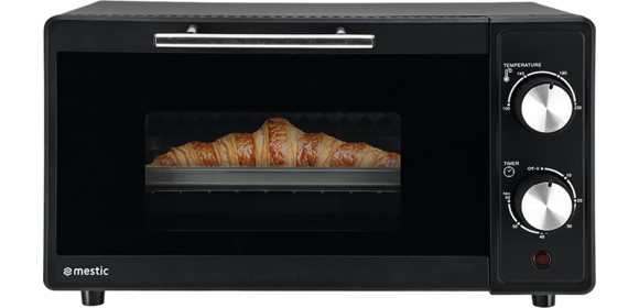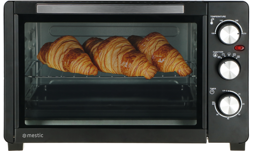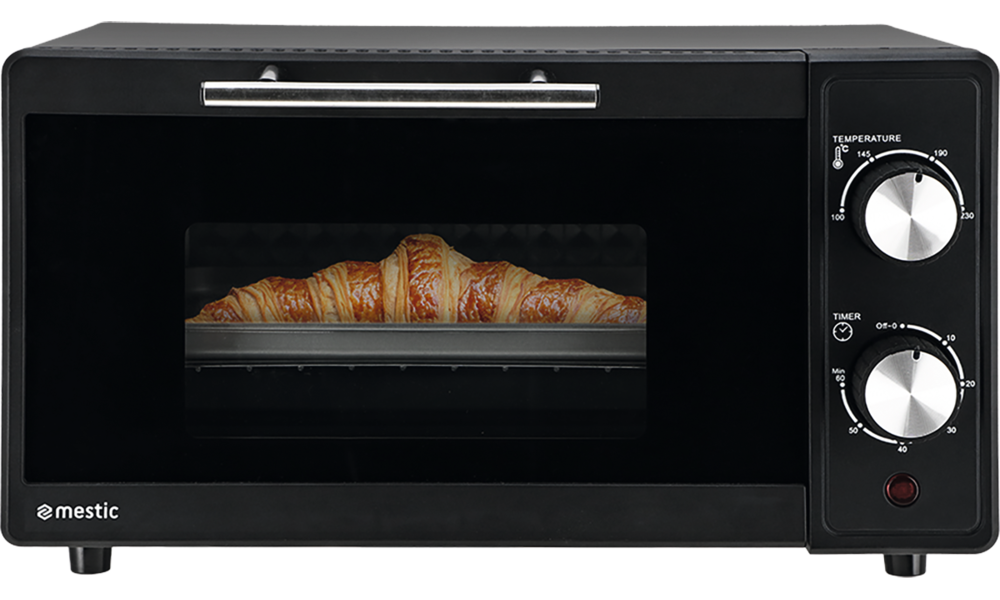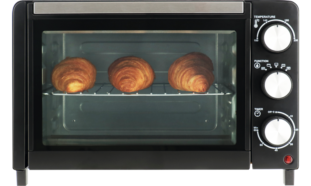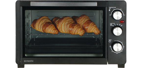 Der kleine Backofen verfügt über vier Heizstufen: Oberhitze, Unterhitze, Ober- und Unterhitze und Heißluftheizung.