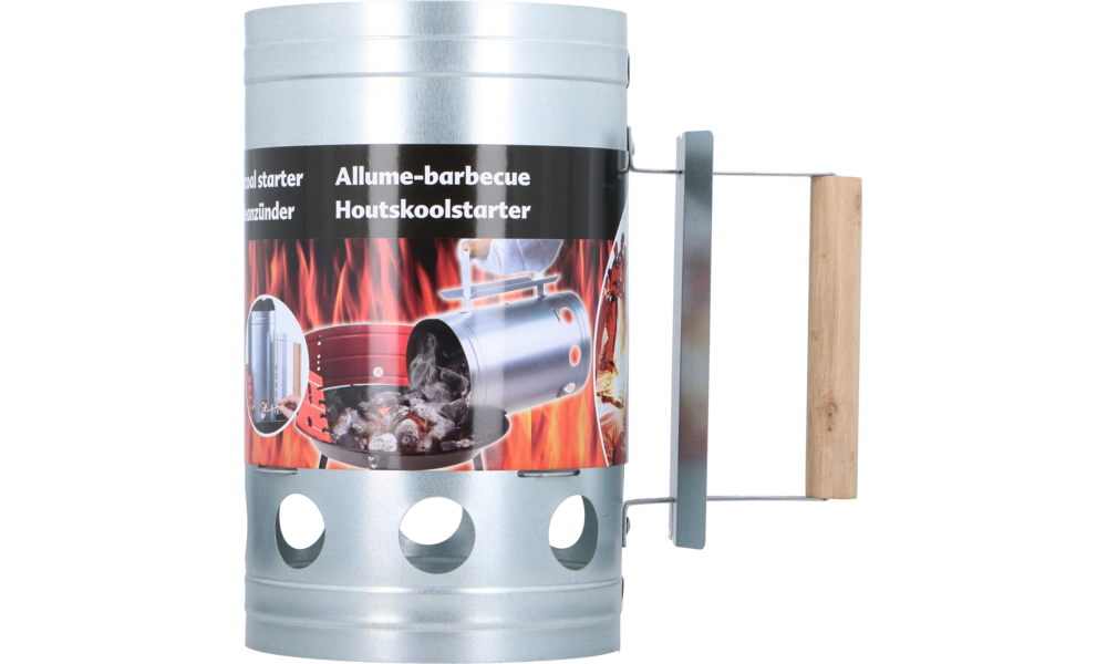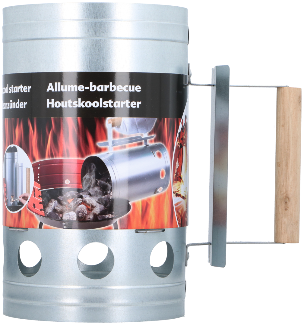 Kohleanzünder. Für schnelles Durchglühen der Kohlen. Mit Holzgriff und Wärmeschirm