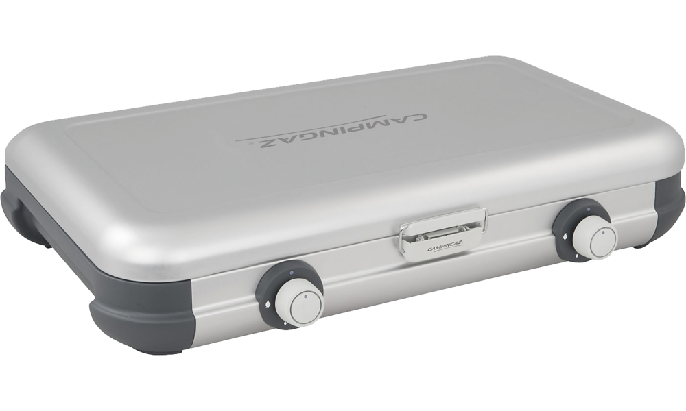 Das kompakte Design mt eingebauten Tragegriffen ermöglicht ein platzsparendes Verstauen im Auto oder dem Wohnmobil. Weiterhin hat der Kocher hitzeresistente Topfhalter aus emaillierten Stahl, die zusätzlich als Windschutz dienen. Die einfache Abnahme der Topfhalter ermöglicht ein schnelles und einfaches Säubern. Robuster Deckel aus lackiertem Stahl. Leistung 2 x 2.000 W. Gasverbauch 291 g/h.