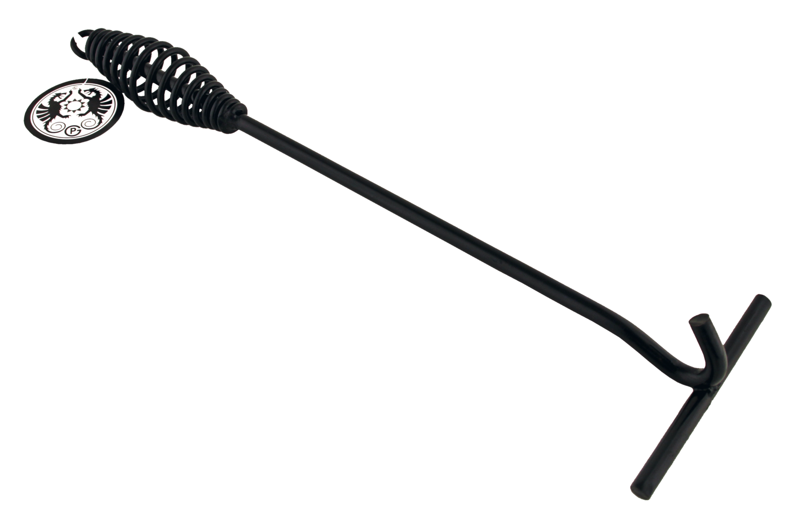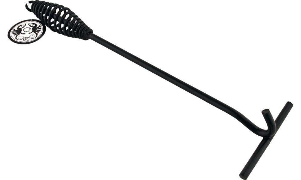 Durch den spiralförmigen Griff liegt der Deckelheber angenehm in der Hand und ein Wegrutschen während des Hebens oder Ablegens wird verhindert. Er eignet sich auch als Schürhaken für Lagerfeuer und Kamin. Material: Stahl, lackiert.
