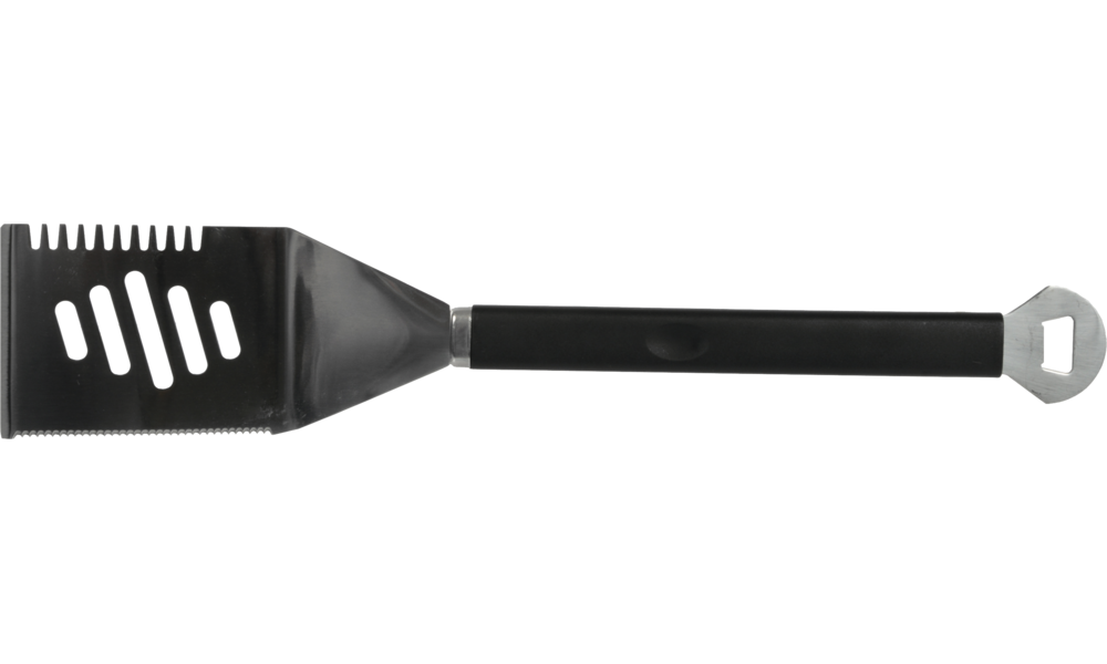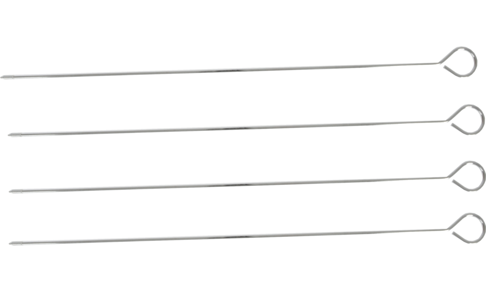 BBQ-Grillbesteck. Sechsteiliges Grillbesteck bestehend aus Zange, Pfannenwender und 4 Grillspießen.