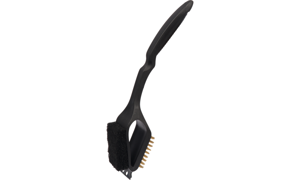 Grillreinigungsbürste 3-in1. Stahlbürste, Scheuerschwamm und Schaber in Einem. Länge ca. 38 cm.