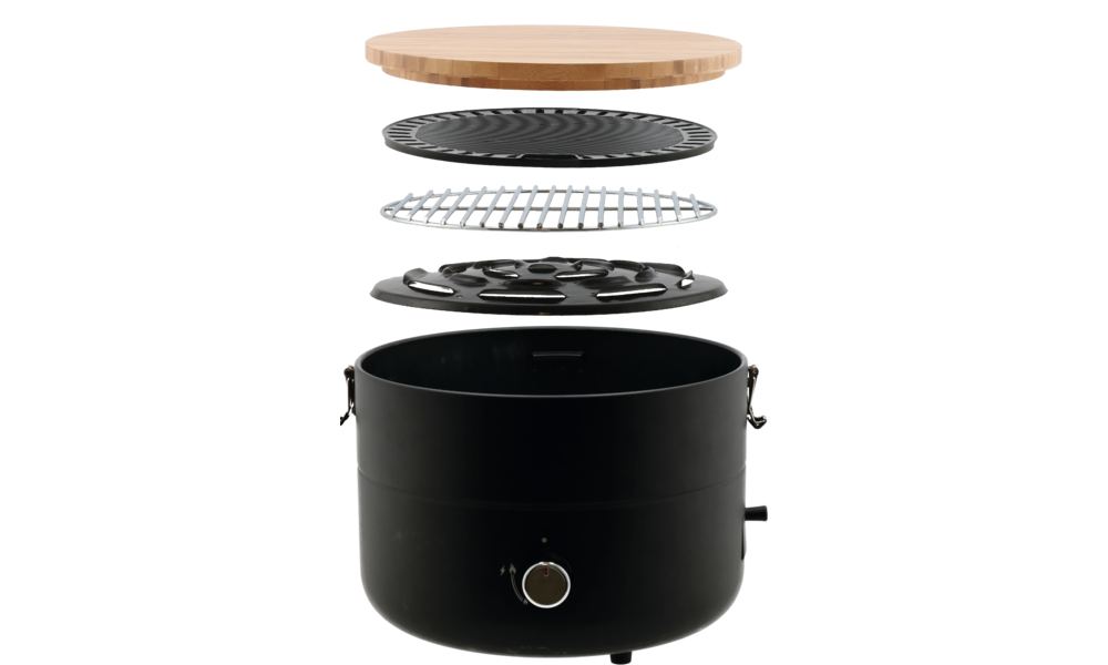 Mestic BBQ Mini Chef MB-100. Dank der kompakten Größe und des praktischen Tragegriffs lässt sich der BBQ Mini Chef ganz einfach transportieren. Mit modularem System mit verschiedenen Kochflächen und multifunktionalem Schneidebrett. Mit Piezo-Zündung und integrierter Fett-Auffangschale. Leistung 2,5 kW. Betriebsdruck 30 mbar. Kochfläche ø 31 cm.