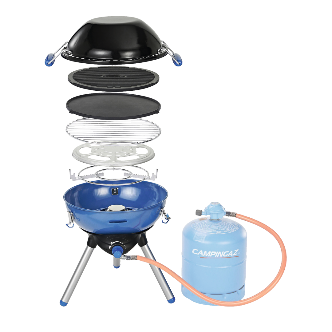 Party Grill™. Die Geräte der Linie Party Grill™ sind eine multifunktionale Alternative zu traditionellen Kochern und kompakten Grillgeräten. Sie sind im Nu vom Kocher zum Grill umfunktioniert, sind einfach zu reinigen und in Ausführungen für den Betrieb mit Propan-, Butangasflaschen oder Ventilkartuschen erhältlich. Alle Komponenten können im Inneren des Kochers gelagert werden um den Transport und die Lagerung zu vereinfachen.