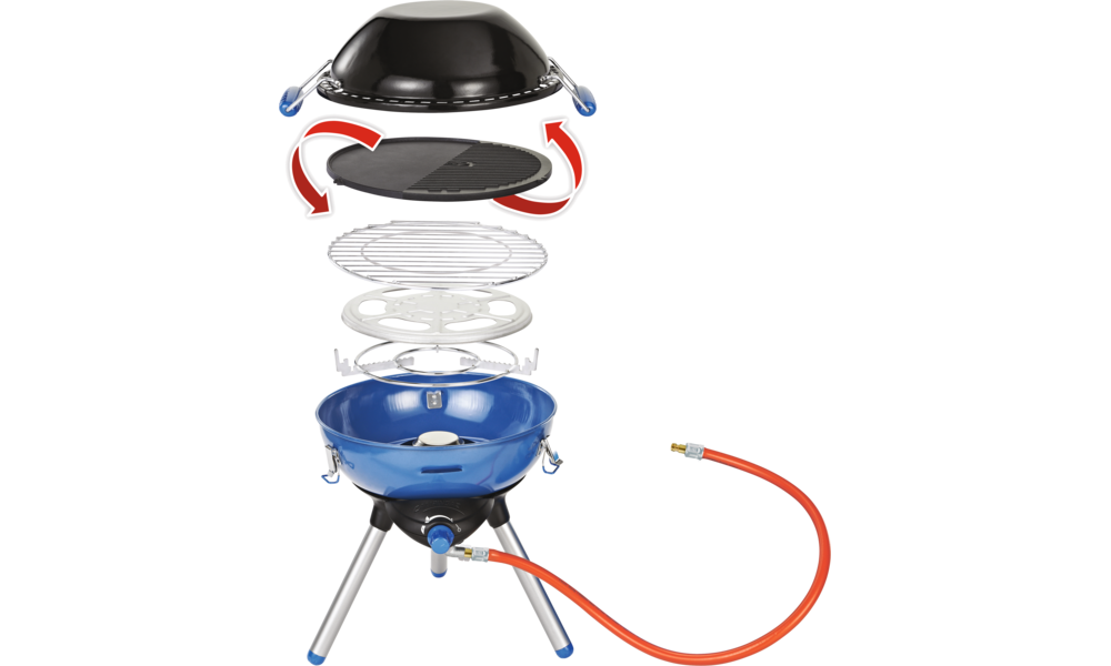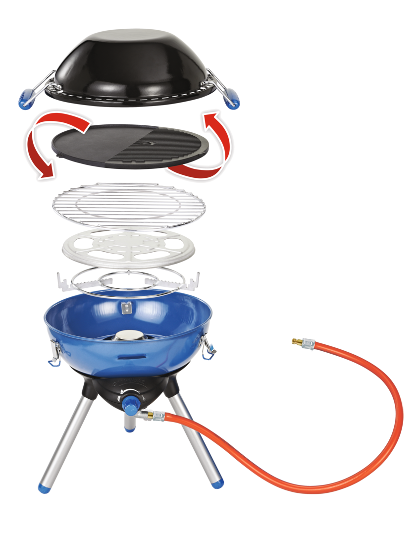 Party Grill™. Die Geräte der Linie Party Grill™ sind eine multifunktionale Alternative zu traditionellen Kochern und kompakten Grillgeräten. Sie sind im Nu vom Kocher zum Grill umfunktioniert, sind einfach zu reinigen und in Ausführungen für den Betrieb mit Propan-, Butangasflaschen oder Ventilkartuschen erhältlich. Alle Komponenten können im Inneren des Kochers gelagert werden um den Transport und die Lagerung zu vereinfachen.