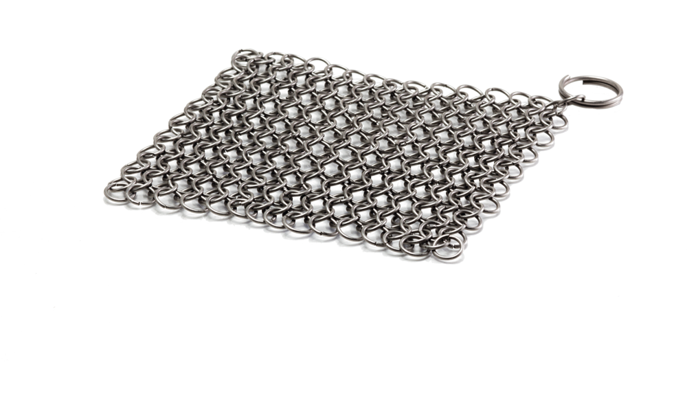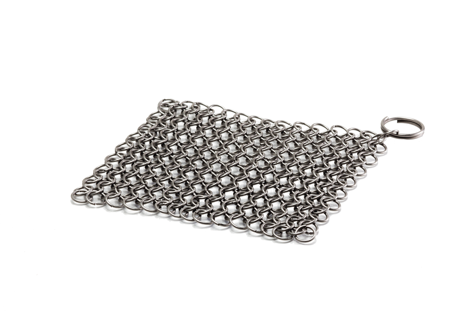 Reinigt mühelos Gusseisen, Schmiedeeisen und Edelstahl ohne die wertvolle Patina zu beschädigen. Die Struktur der ineinander fassenden Ringe entfernt schonend Essensrückstände und schont die Oberfläche des Kochgeschirrs. Material: Edelstahl.