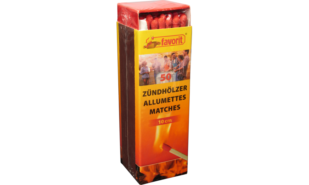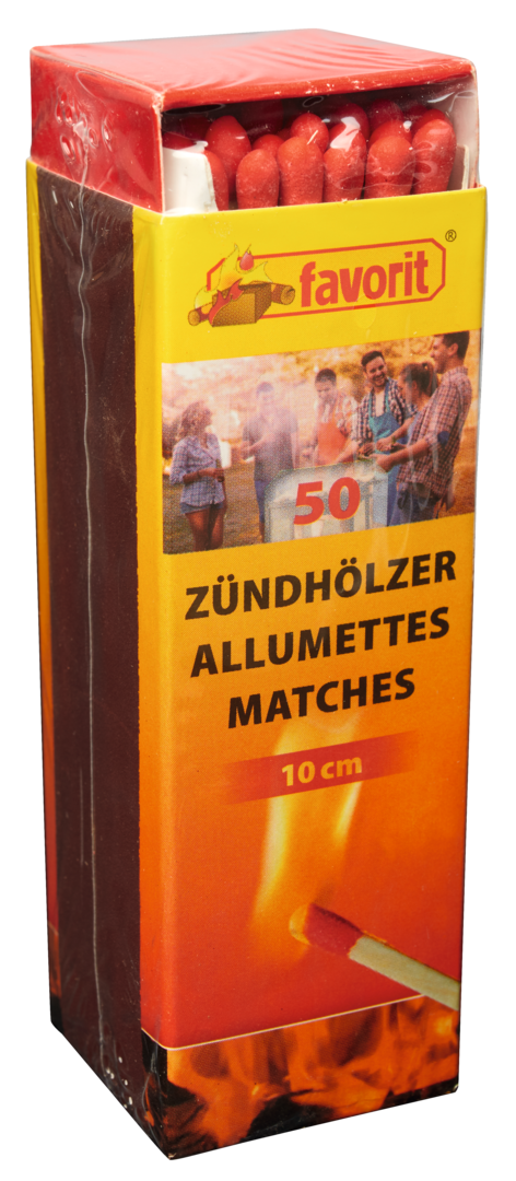Sicherheits-Zündhölzer. 10 cm lang. Inhalt 50 Stück.