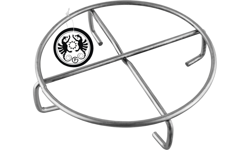 Stabiler Untersetzer aus galvanisiertem Stahl, eignet sich auch für das Kochen auf dem Feuer.