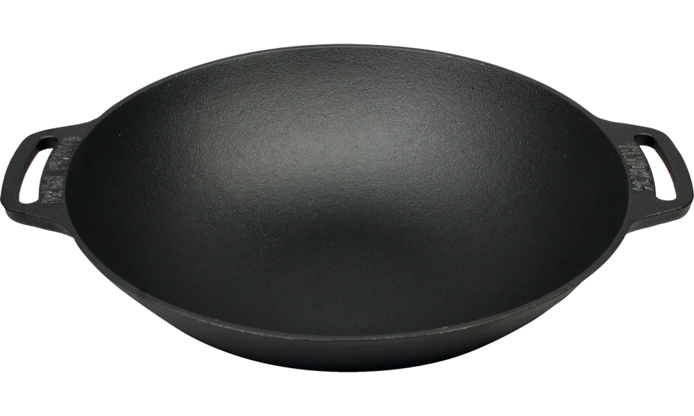 Valhal Wok-Pfanne. Der gusseiserne Wok hat einen Durchmesser von 36 cm. Die einzigartigen Kocheigenschaften von Gusseisen machen ihn perfekt für die Zubereitung von Wok-Gerichten.