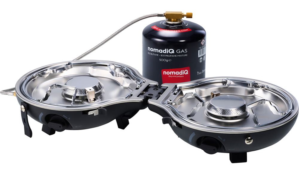 smarte NomadiQ-Gaskocher verfügt über zwei sehr leistungsstarke Brenner mit zwei unabhängigen Temperaturreglern