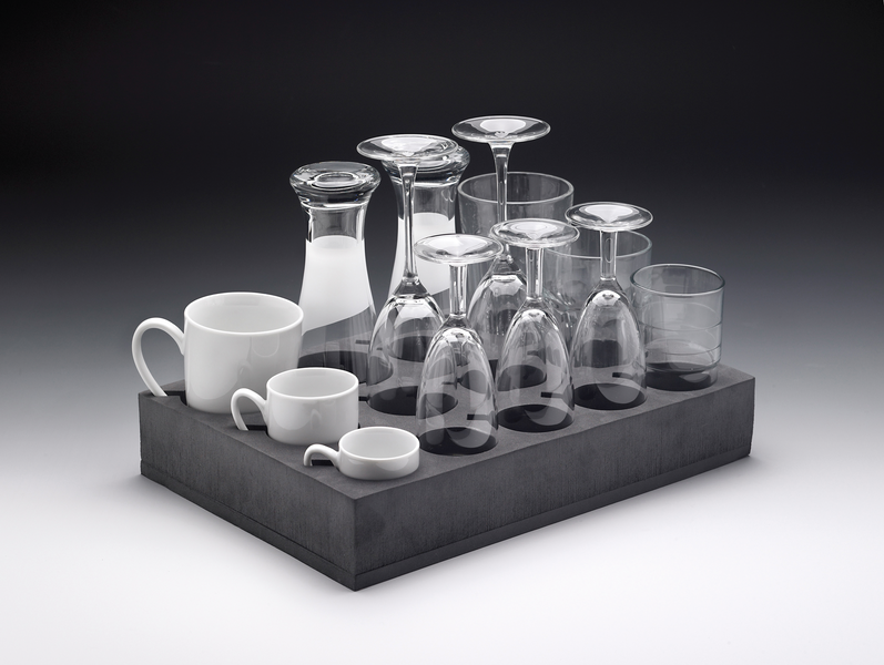 Die Haltervertiefungen mit unterschiedlichen Durchmessern passen für Tassen und Gläser in den gängigen Standardgrößen.