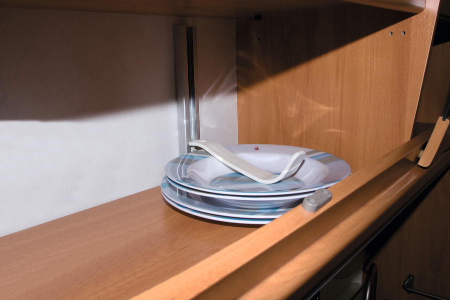 Innovatives, aber einfaches Zubehör, um Teller oder andere lästige Gegenstände sicher festzuklemmen und dadurch unnötige Geräusche zu vermeiden.
