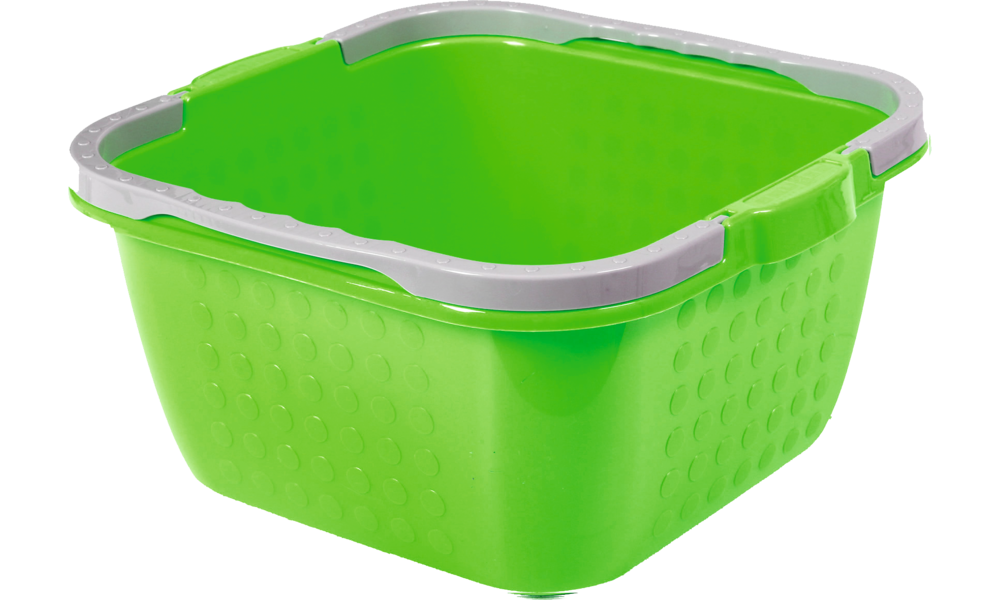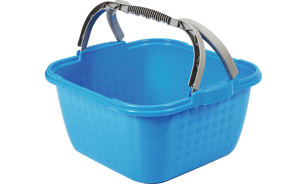 Klappgriffbecken aus lebensmittelechtem Kunststoff.