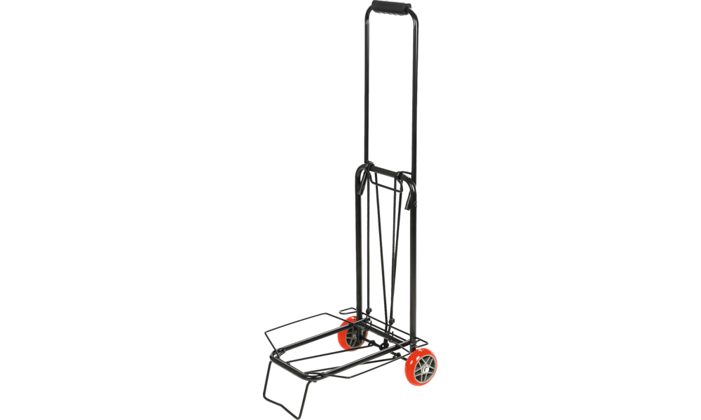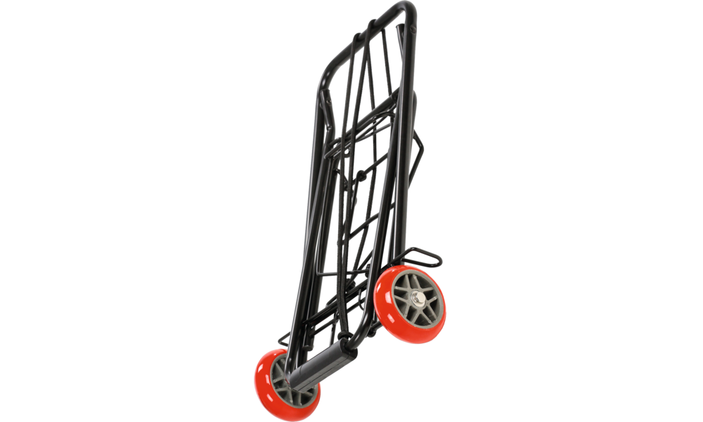 Praktischer Klapptrolley mit gut dimensionierten Laufrädern, die auch eine Verwendung auf unebenem Gelände ermöglichen.