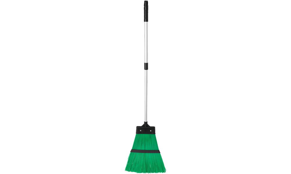 Besen mit teleskopierbarem Alu-Stiel (86 - 124 cm) und widerstandsfähigen Kunststoff-Borsten.
