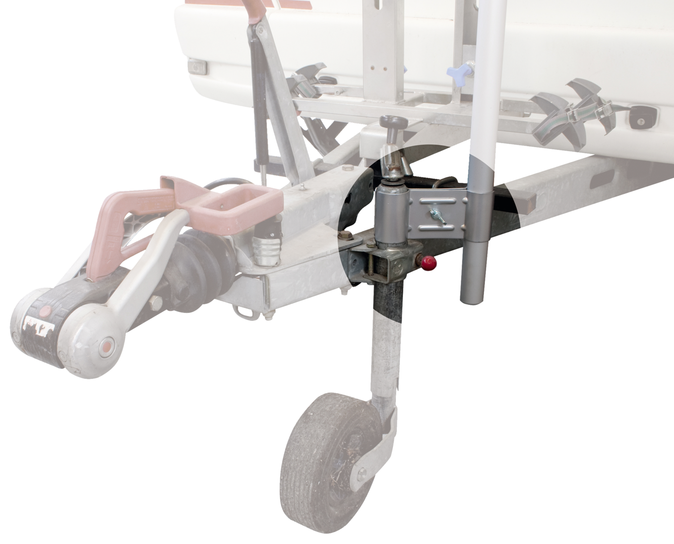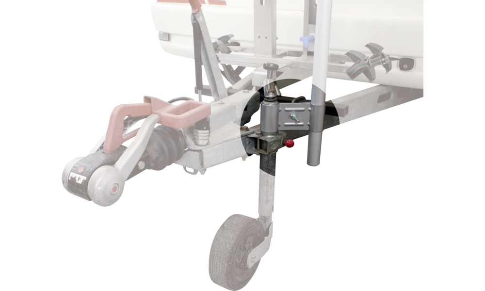 Klemmhalterung für Deichsel-Laufräder ø 48 mm zur Befestigung von Wäschespinnen oder Antennenmasten.