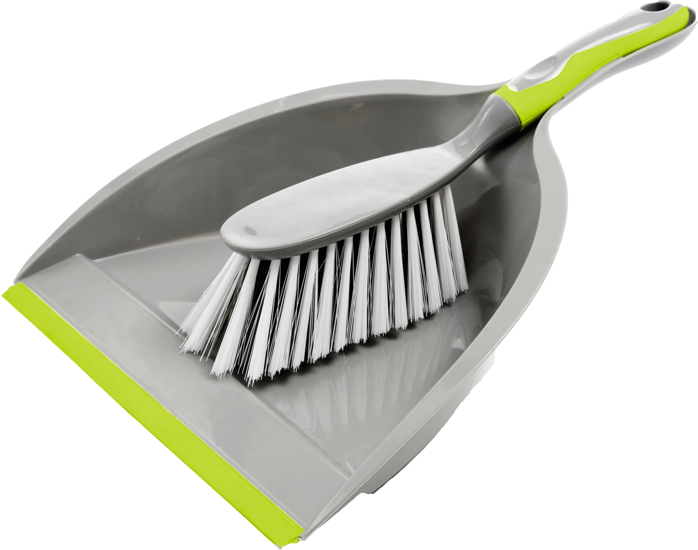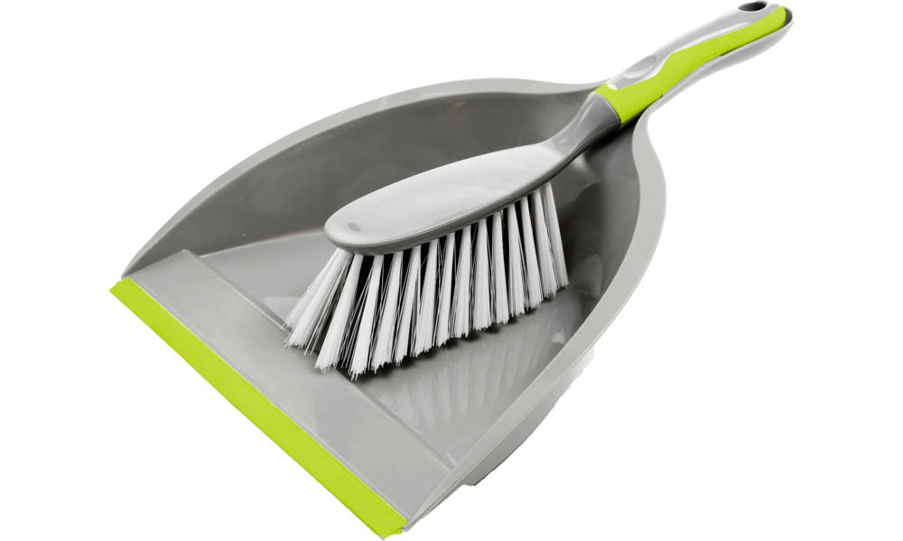 Kunststoff-Kehrset mit breiterer Schaufel. Mit Gummileiste.