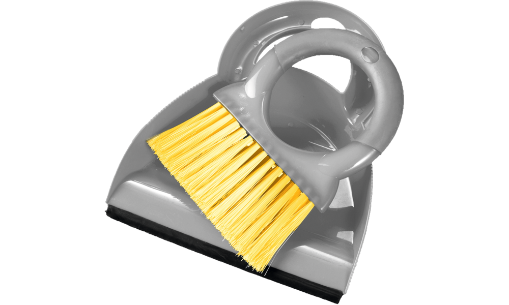 Platzsparendes Mini-Kehrset bestehend aus Handfeger und Kehrschaufel.