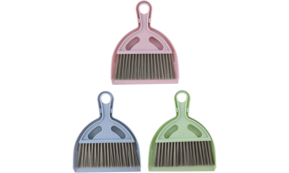 Platzsparendes Kehrset bestehend aus Handfeger und Kehrschaufel.