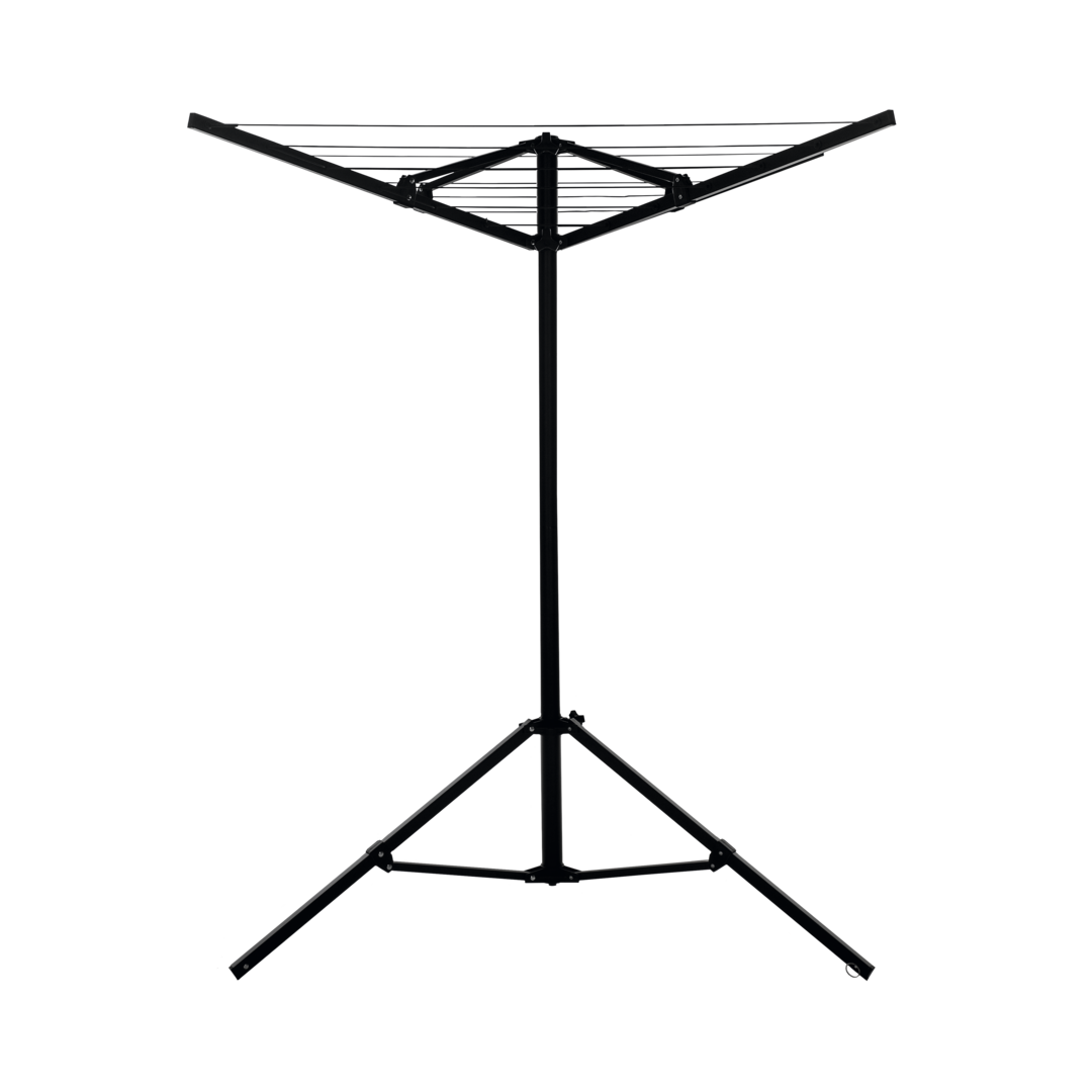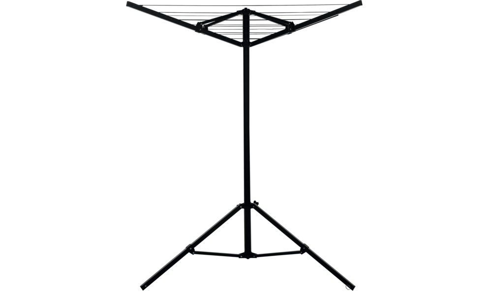 Inklusive Tragetasche. 15 m Wäscheleine. Maße offen 110 x 110 x 158 cm, geschlossen 235 x 81 x 16 cm.