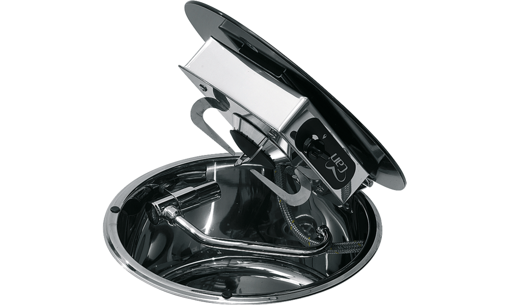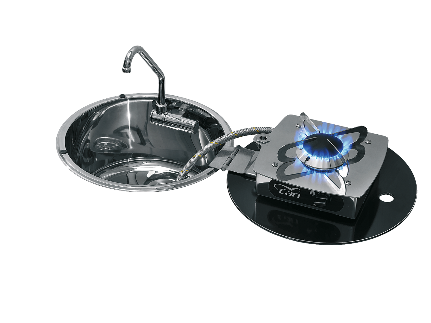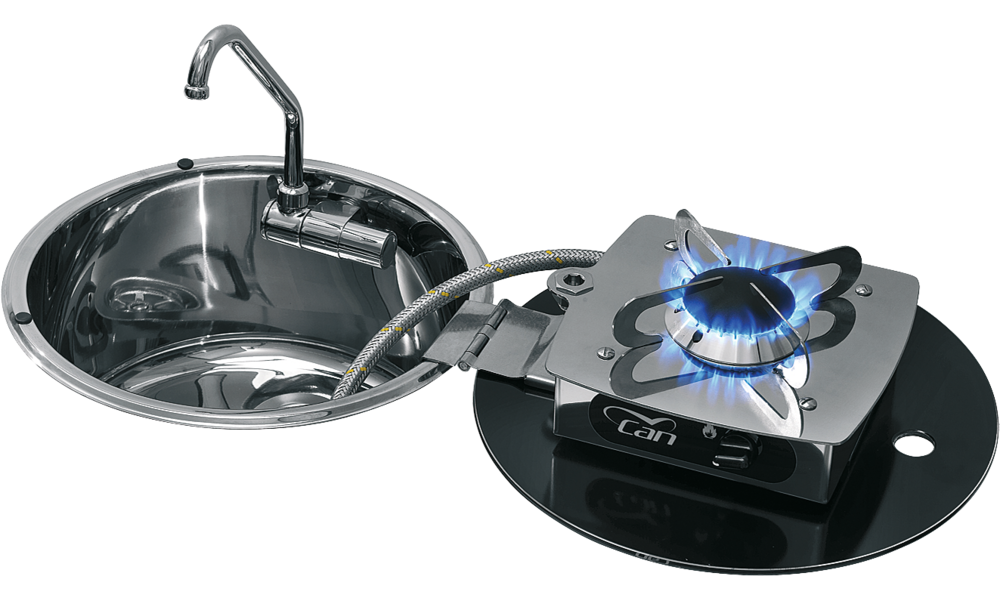 Aus Edelstahl, 1-flammig mit hitzebeständigem Glasdeckel.