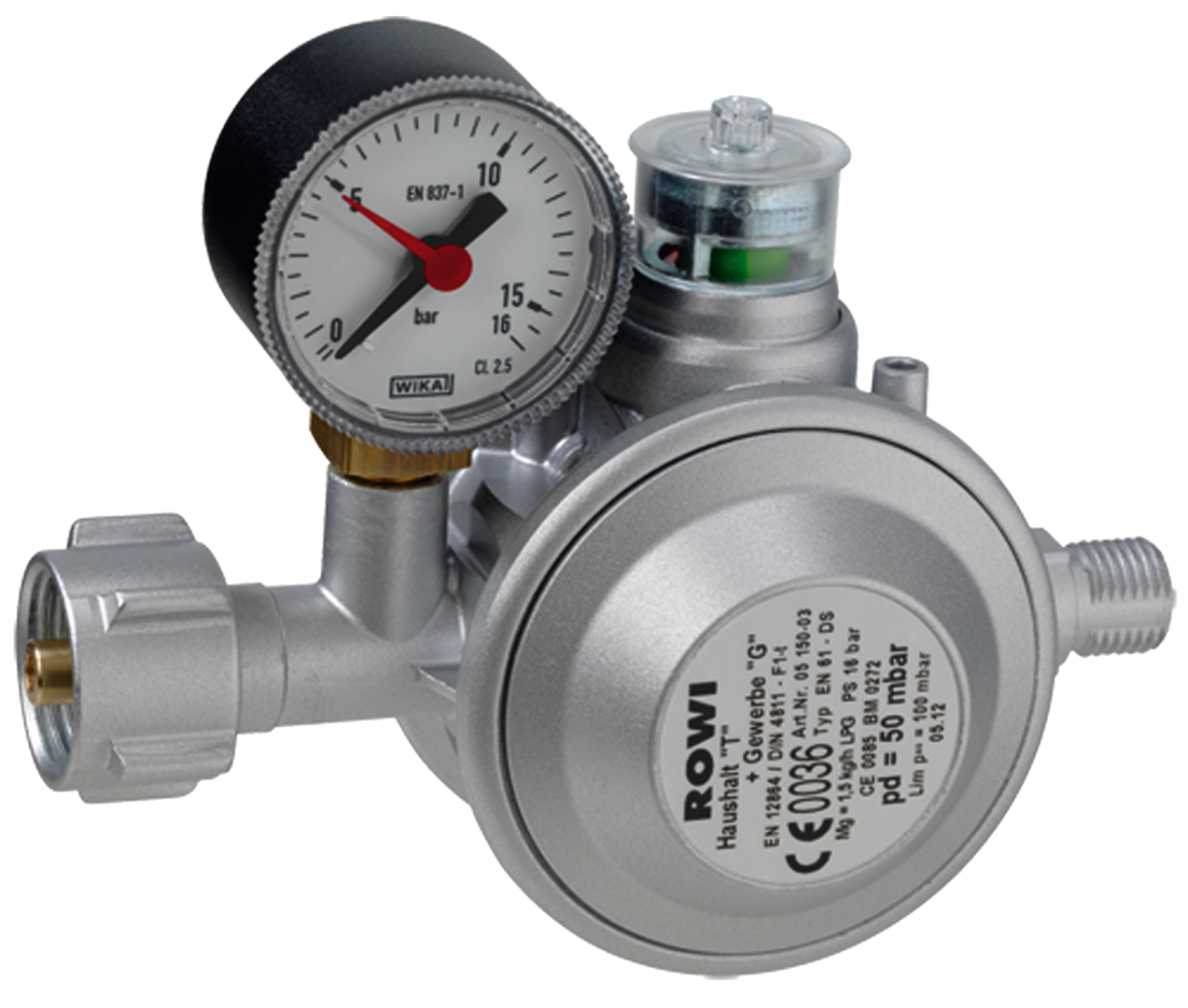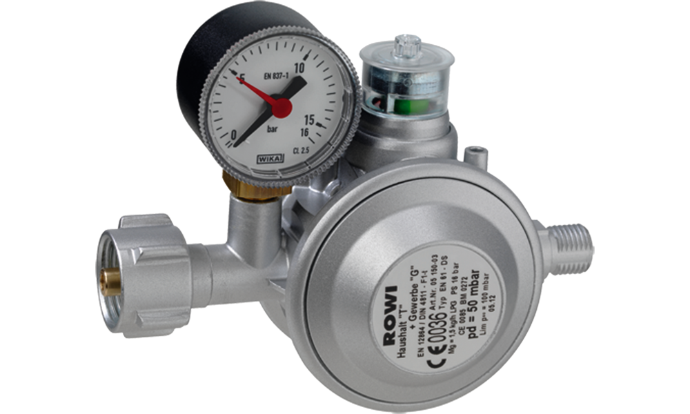 Höchste Sicherheit dank zweistufigem Regler. Mit Kontrollmanometer zur Dichtheitsprüfung und Thermo-Sicherheitsventil.