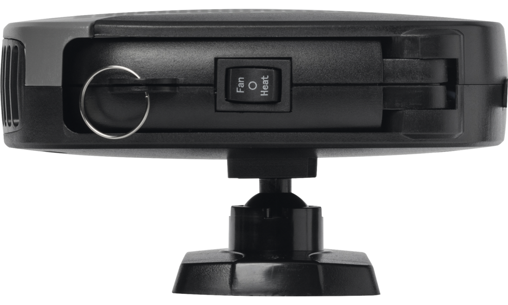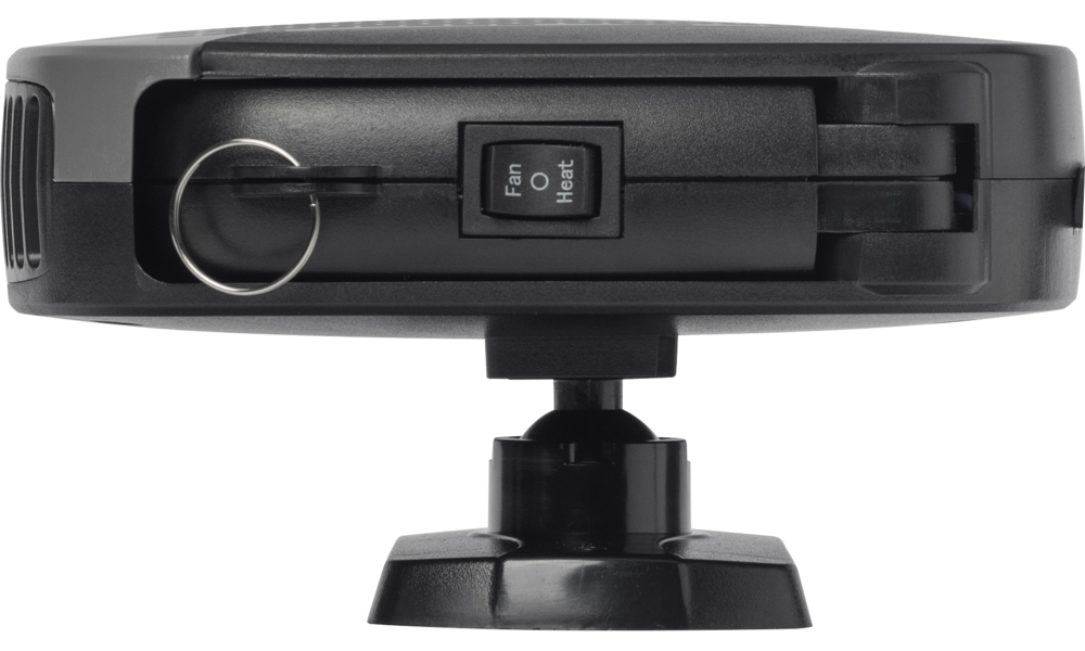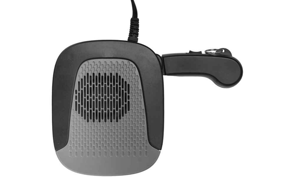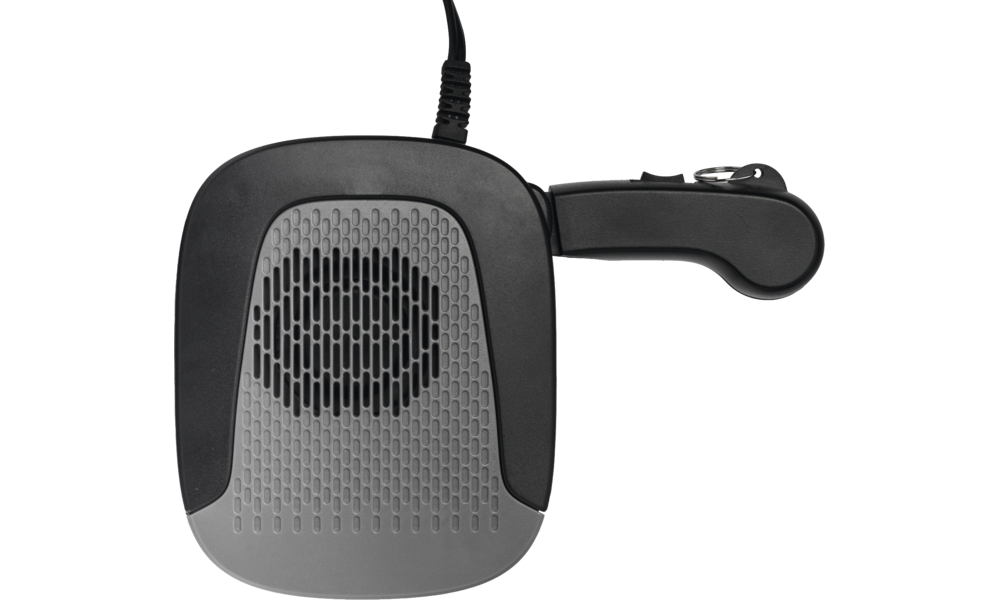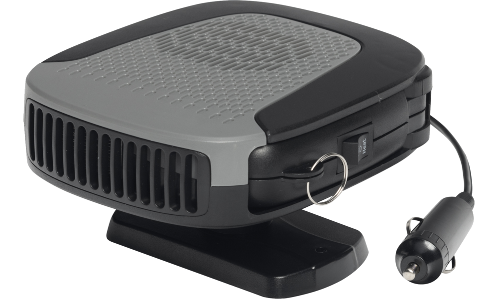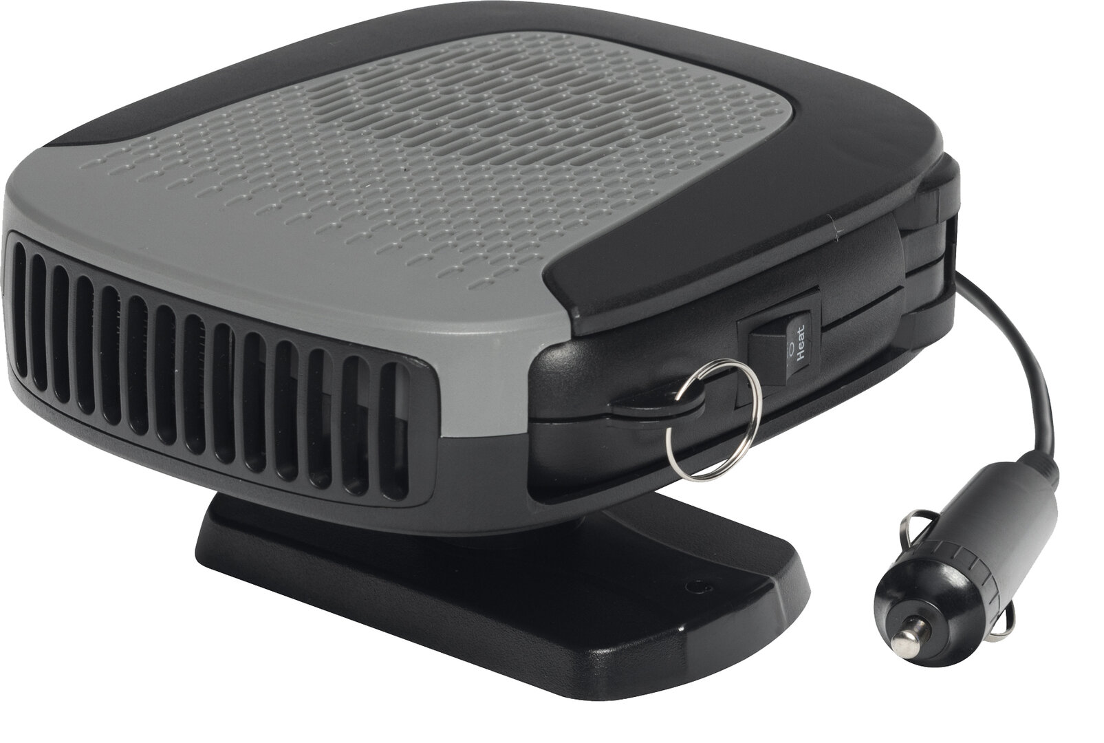 Heizlüfter, betrieben mit 12 V Gleichstrom. Sehr effizient, mit drehbarem Sockel für das Armaturenbrett und integriertem Kippschalter zum Umstellen von Heizung auf Gebläse.