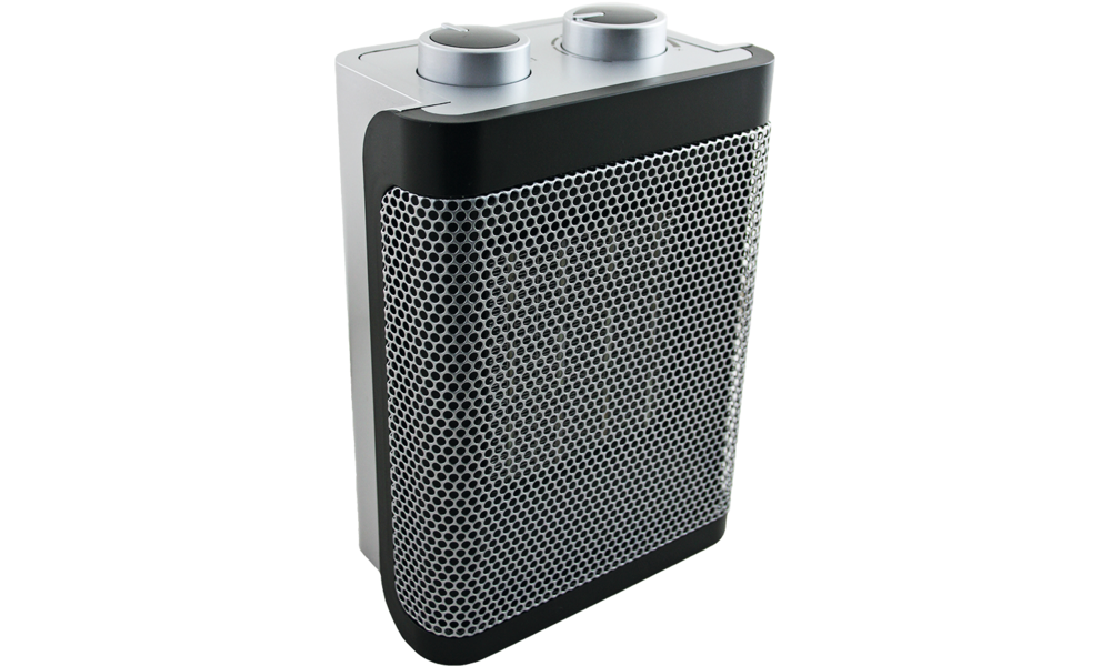 Mit Umkippsicherung für zusätzliche Sicherheit. Heizstufen: Ventilatorbetrieb, 500 und 1000 W. TÜV/GS-geprüft.
