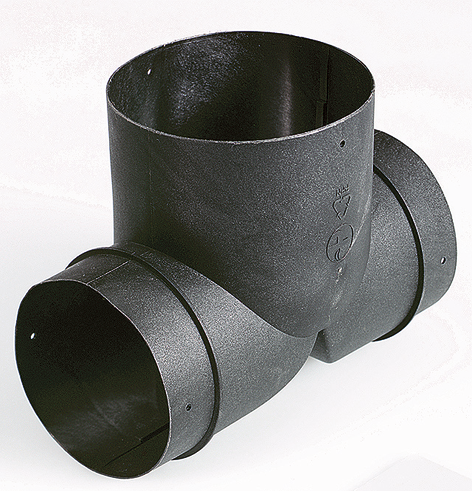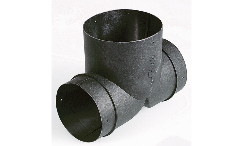 Eingang ø 80 mm, Ausgang 2 x ø 65/72 mm.