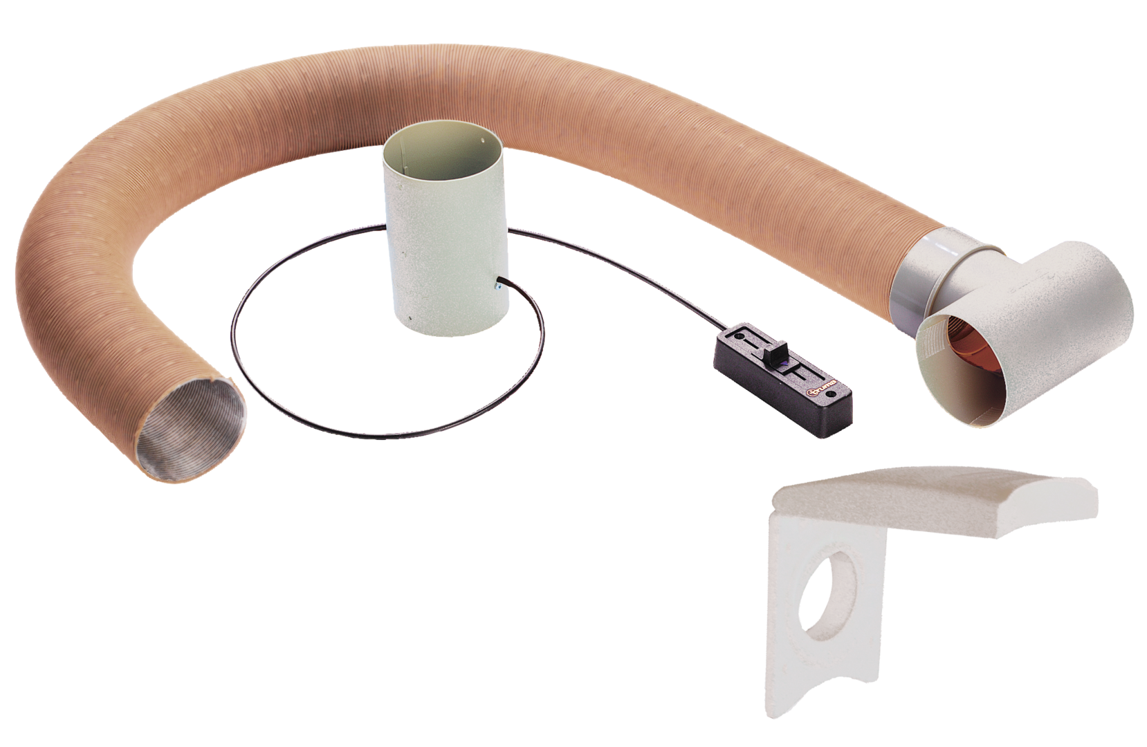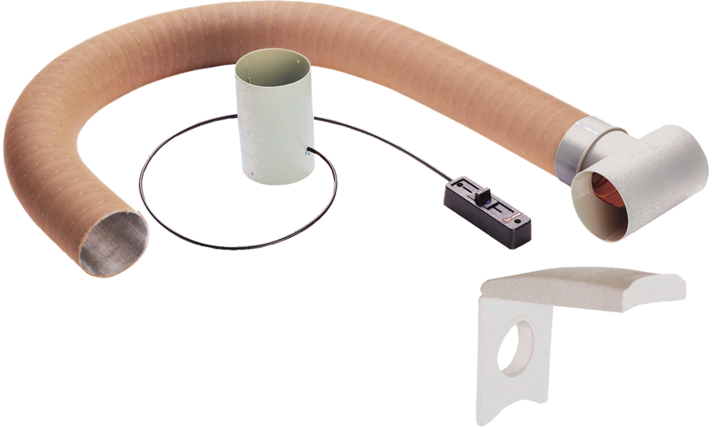 Bestehend aus: Warmluftauslass mit Klappe, 1 m Rohr ø 65 mm, T-Stück TS und Strangsperre SP 2.