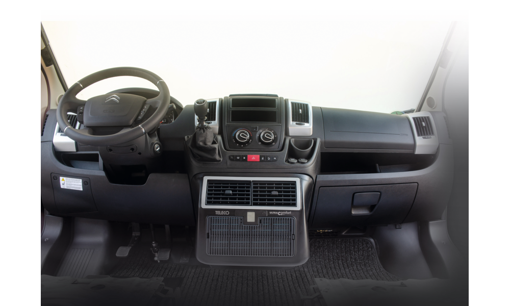 Eine neue und innovative Konstruktion verlagert die Klimaanlagen für Wohnmobile vom Dach in den Motorraum, mit dem Diffusor unter dem Armaturenbrett.
