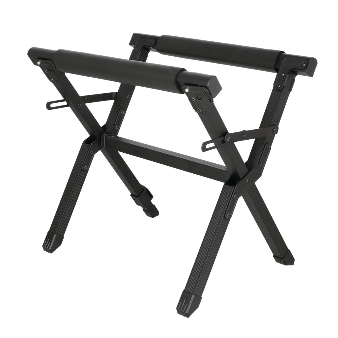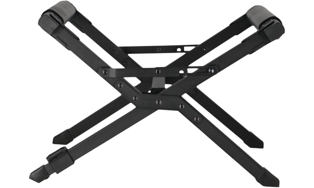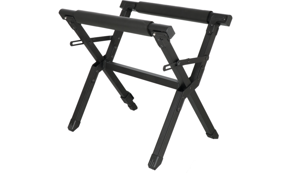 Komfortabler, klappbarer Kühlboxen-Ständer aus robustem Alu-Vierkantrohr mit Bodenschonern und gepolsterten Auflageprofilen.