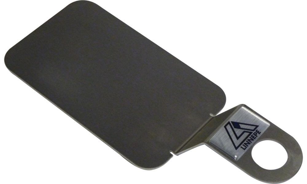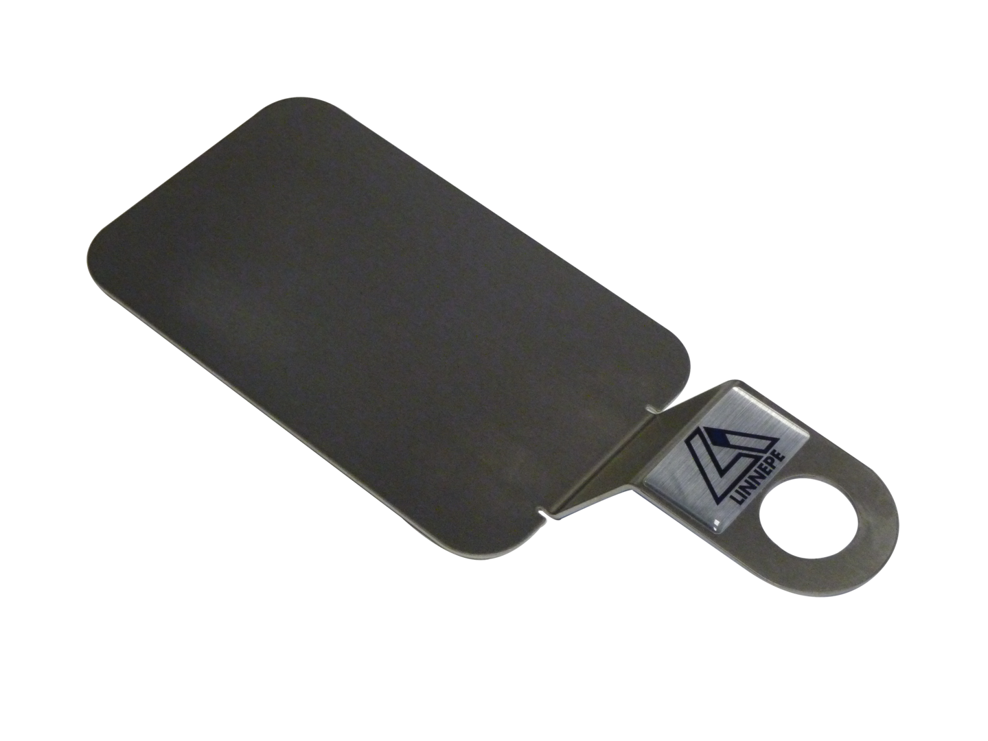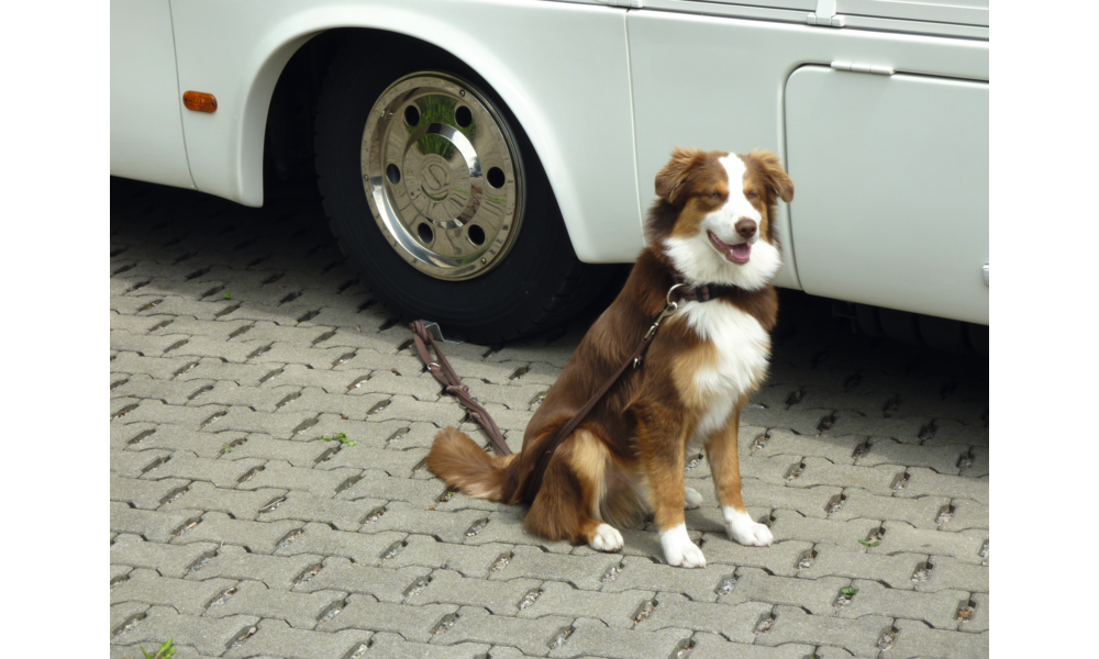 Die robuste und massive Edelstahlplatte wird mit einem der PKW- oder Wohnmobilreifen blockiert und bietet an der stabilen Öse die Möglichkeit, eine Hundeleine zu befestigen.