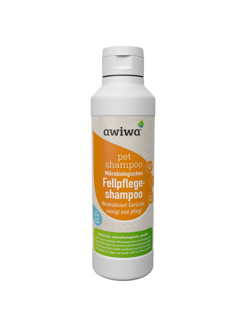 Dieses Shampoo enthält natürliche Mikroorganismen zur Neutralisierung von Gerüchen beim Tier und baut Nährböden für Krankheitskeime ab.