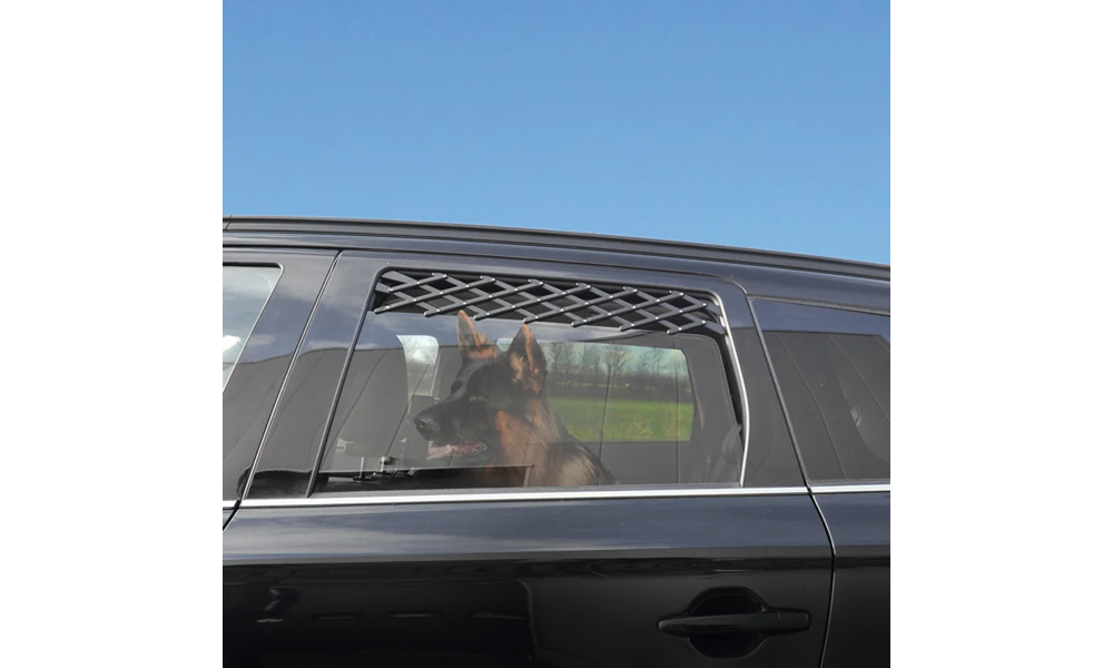 Das Lüftungsgitter kann einfach zwischen die geöffnete Fensterscheibe und Karosserie geklemmt werden, sodass Ihre Fellnase ausreichend Frischluft bekommt.