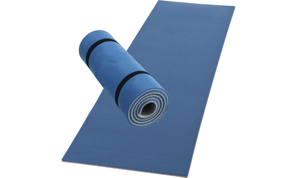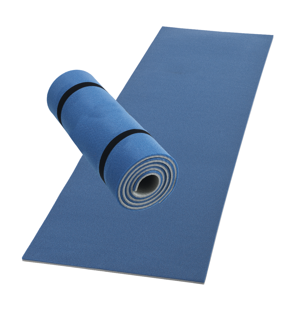 PE-Liegematte XL. 100 % Polyethylen, doppellagig, Feinprägung, gerollt, mit zwei Stretchgurten.
