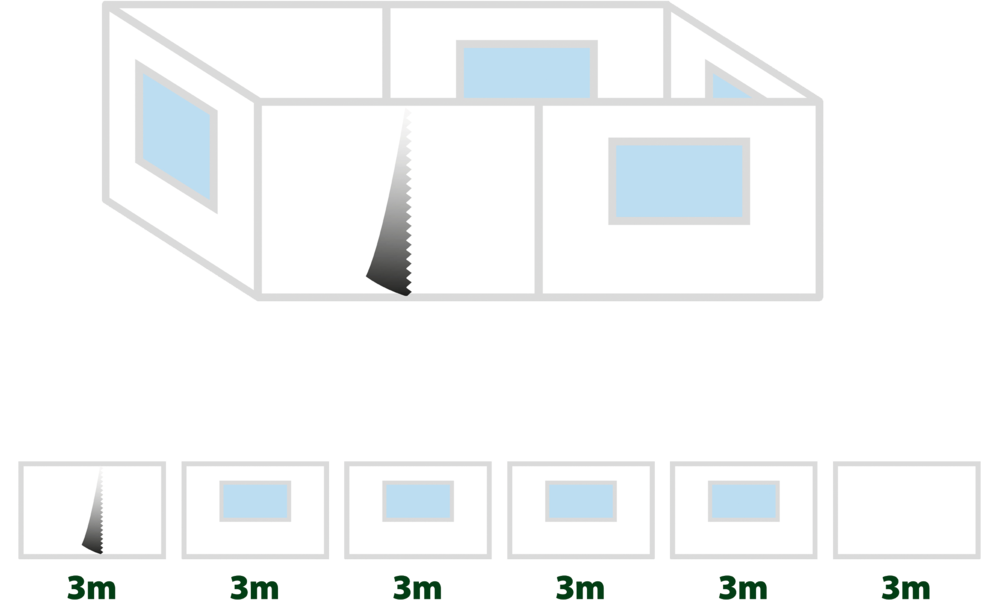 Größe 3x6. Bestehend aus einer Seitenwand mit Reißverschluss, vier Seitenwänden mit Fenster und einer Seitenwand ohne Fenster.