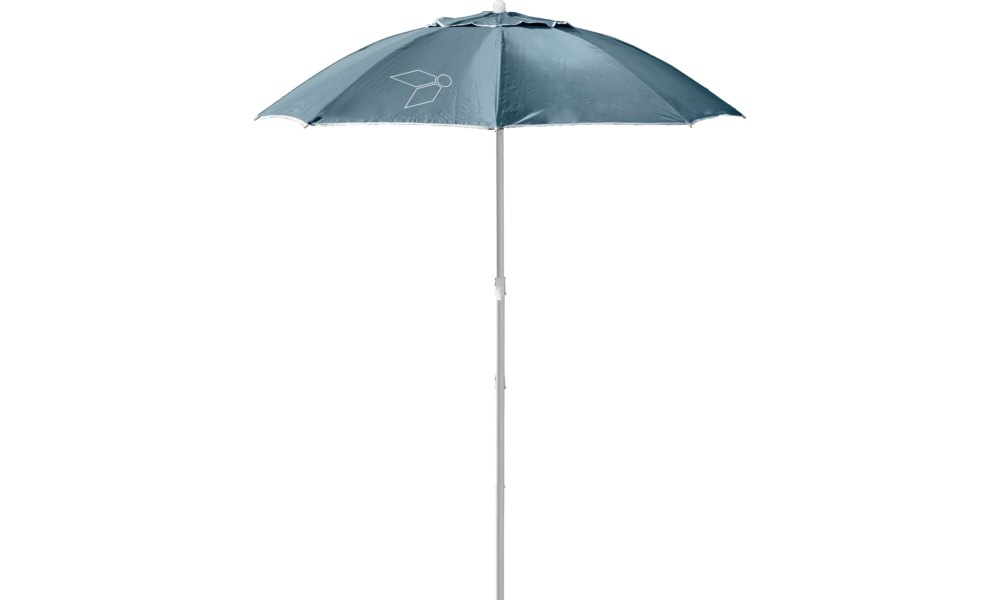Sonnenschirm BEACH PARSOL XL 200. Smarter Strand-Sonnenschirm mit speziell angebrachten Befestigungsbändern, die eine Montage von schattenspendenden Seitenwänden ermöglichen. Bespannung 100 % Polyester, Sonnenschutz UPF 50+, Alu-/Fiberglasmast.