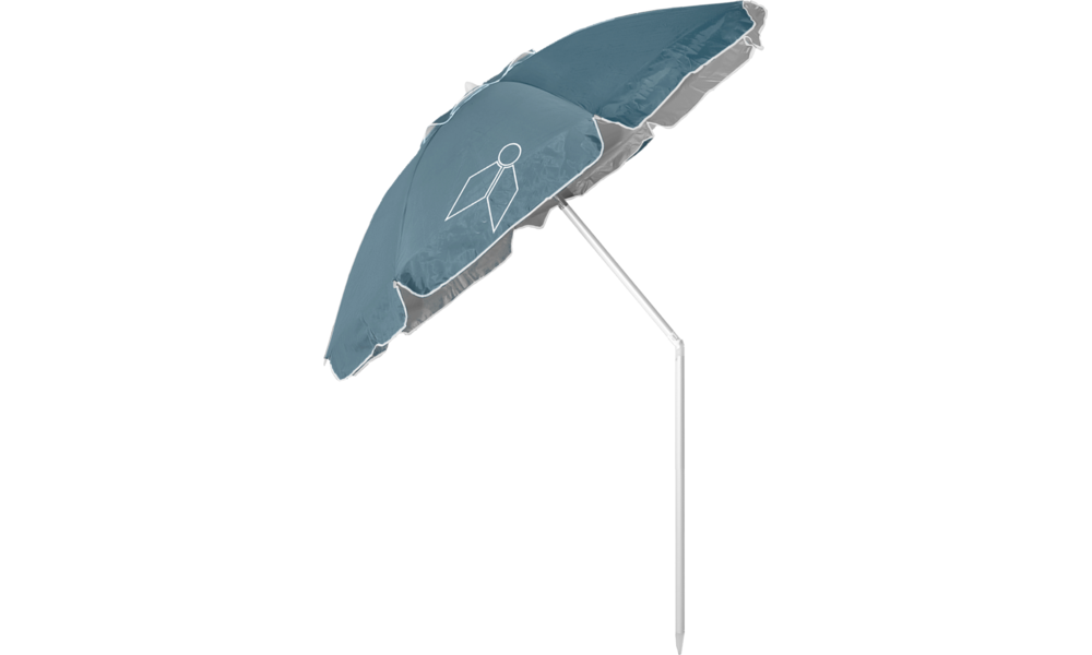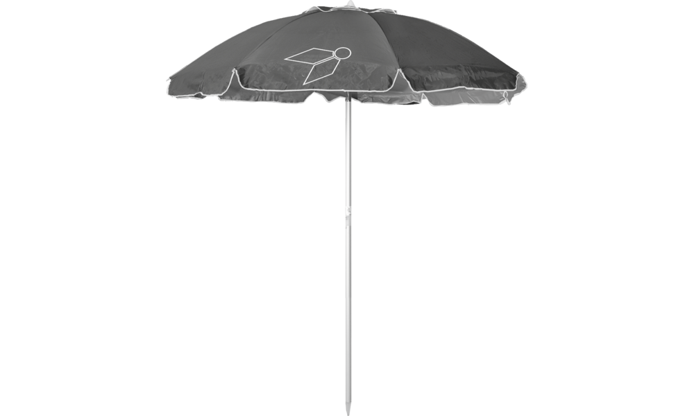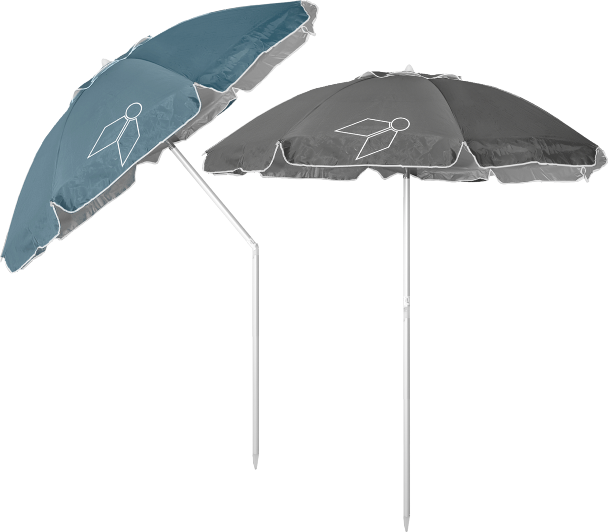 Hochwertiger Sonnenschirm für Garten und Strand. Material aus 100 % PES mit alubeschichteter Innenseite.