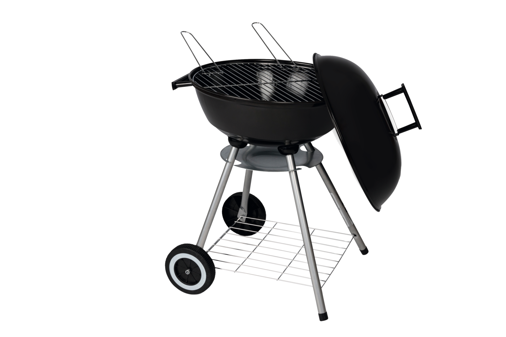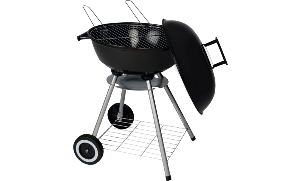 BBQ-Kugelgrill. Mit Schieberegler um Luftzufuhr und Temperatur zu regeln. Deckel- und Seitengriffe isoliert. Robuste Räder. Mit Aschefänger und Ablagegestell für Ihr zusätzliches Grillzubehör.
