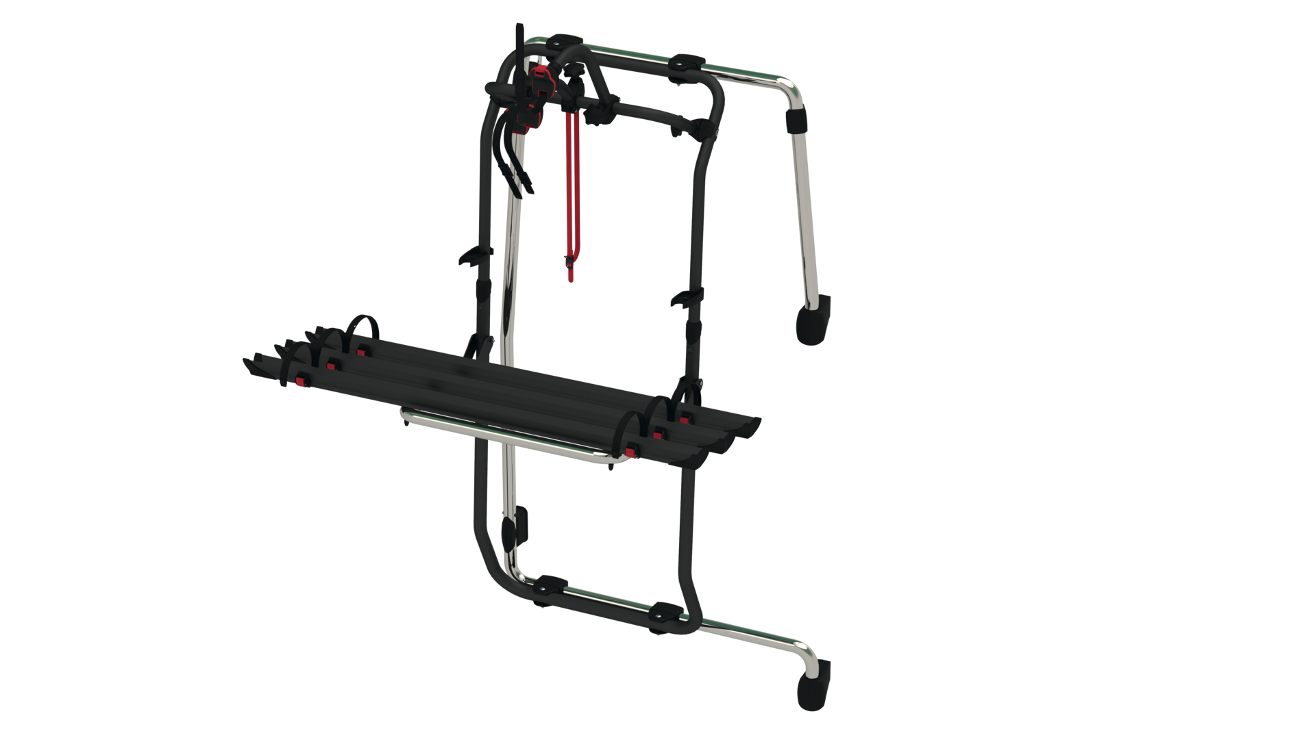 Spezielles Modell für den VW Crafter ab Bj. 2016 mit doppelter Hecktür. Der solide Edelstahlrahmen lässt sich an den serienmäßig vorhandenen Kupplungspunkten des Fahrzeugs anbringen. Er ermöglicht den sicheren Transport von drei normalen Fahrrädern oder zwei E-Bikes, wobei sich die doppelte Hecktür selbst bei Montage eines Fahrradträgers noch öffnen lässt. Die Nummernschildleuchte Licence Plate Carrier ist erforderlich (Nr. 92574/90458).