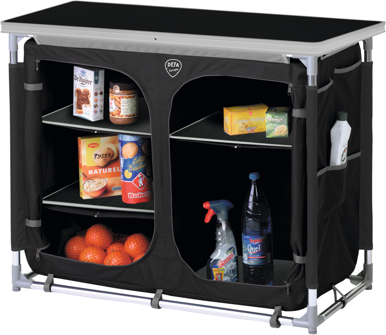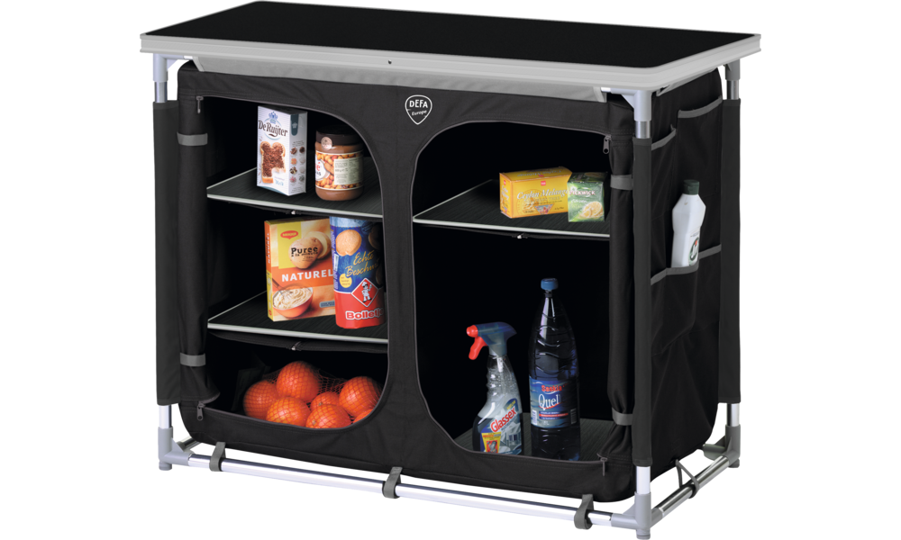 Organizer-Taschen für zusätzlichen Stauraum. Schnell auf- und abbaubar. Zusammenfaltbar. Mit 4 Innenablagen und einer obenliegenden Deluxe-Arbeitsplatte.