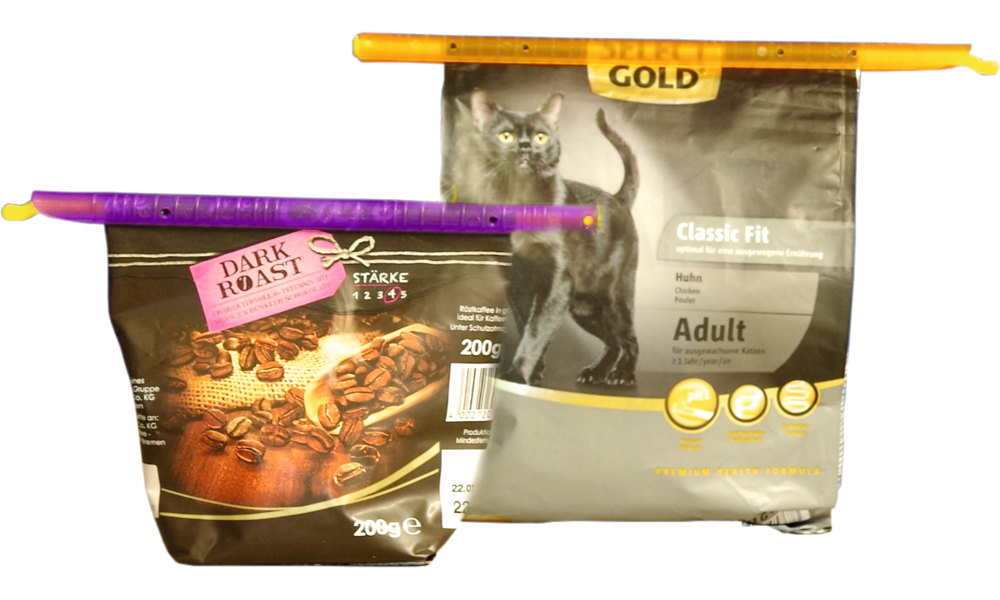 Gebrauchshinweis: Tüte/Beutel umknicken, damit sich ein Falz bildet. Anschließend den EasyFresh Stab mit der Einführhilfe einfädeln und den Falz entlang einschieben.