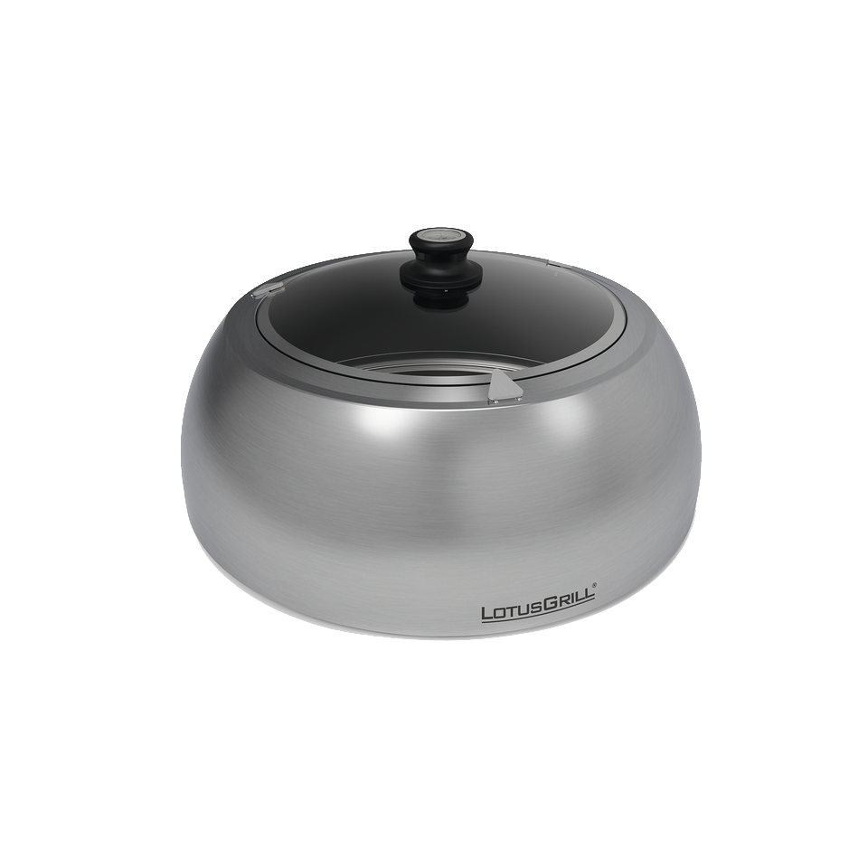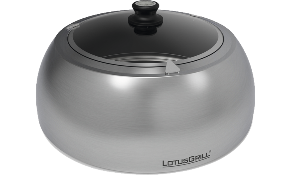 Viel mehr als einfach nur eine Grillhaube, sondern geradezu ein Multitalent! Denn die mit einem einfachen Handgriff aufsetzbare Haube aus Edelstahl lässt blitzschnell einen Ofen entstehen. So kann der LotusGrill mit der leicht handhabbaren Grillhaube auch zum Braten, Garen, Backen, Schmoren oder Warmhalten verwendet werden.