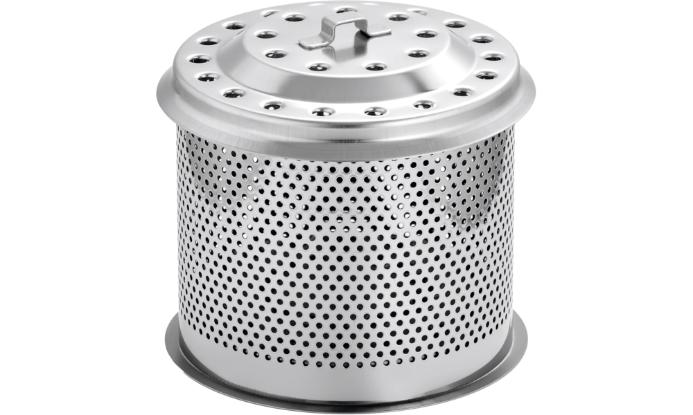 Der stabile Holzkohlebehälter aus gelochtem Edelstahl eignet sich als zusätzlicher Behälter, wenn das Grillen länger dauert und schnell Kohle „nachgeladen“ werden muss. Der Behälter mit seinem gelochten Deckel hält die Holzkohle vollständig und zuverlässig zurück, verhindert Funkenflug und lässt gleichzeitig die Hitze ungehindert nach oben entweichen. Für ca. 200 g Holzkohle.