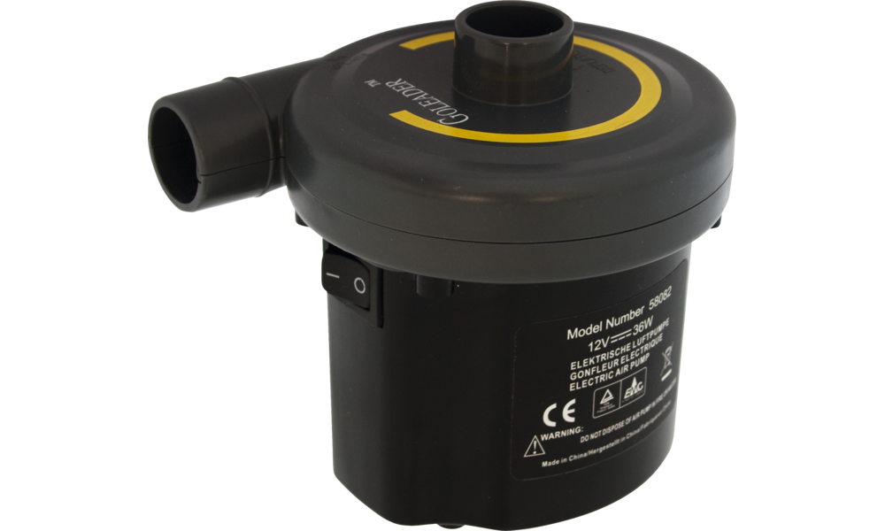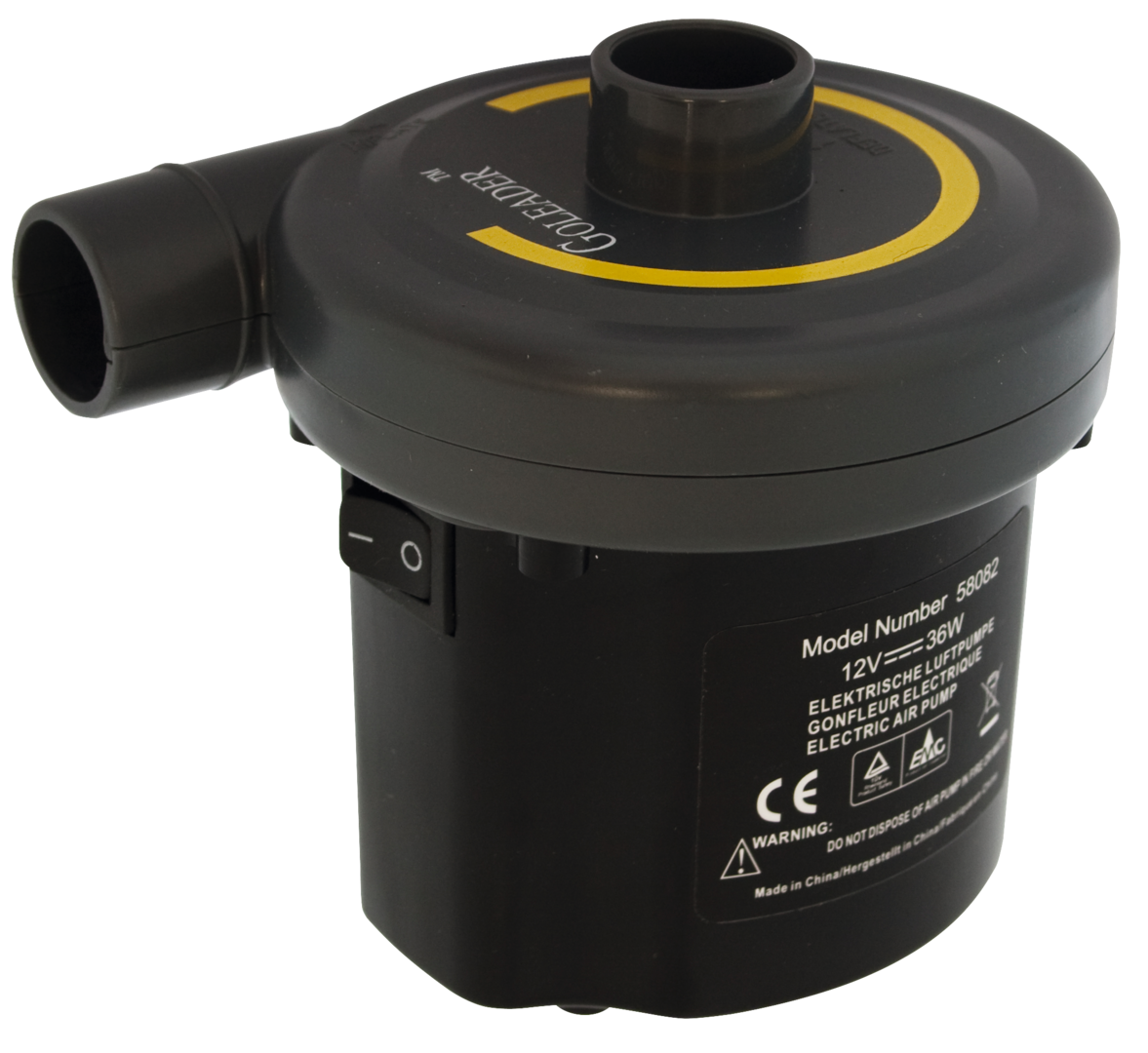 Elektropumpe 230 V. Leistungsstarke Elektropumpe zum Aufblasen und Absaugen. Inklusive drei Adapterstücken. Anschlussspannung 230 V, Leistungsaufnahme max. 130 W. Leistung 440 l/min.